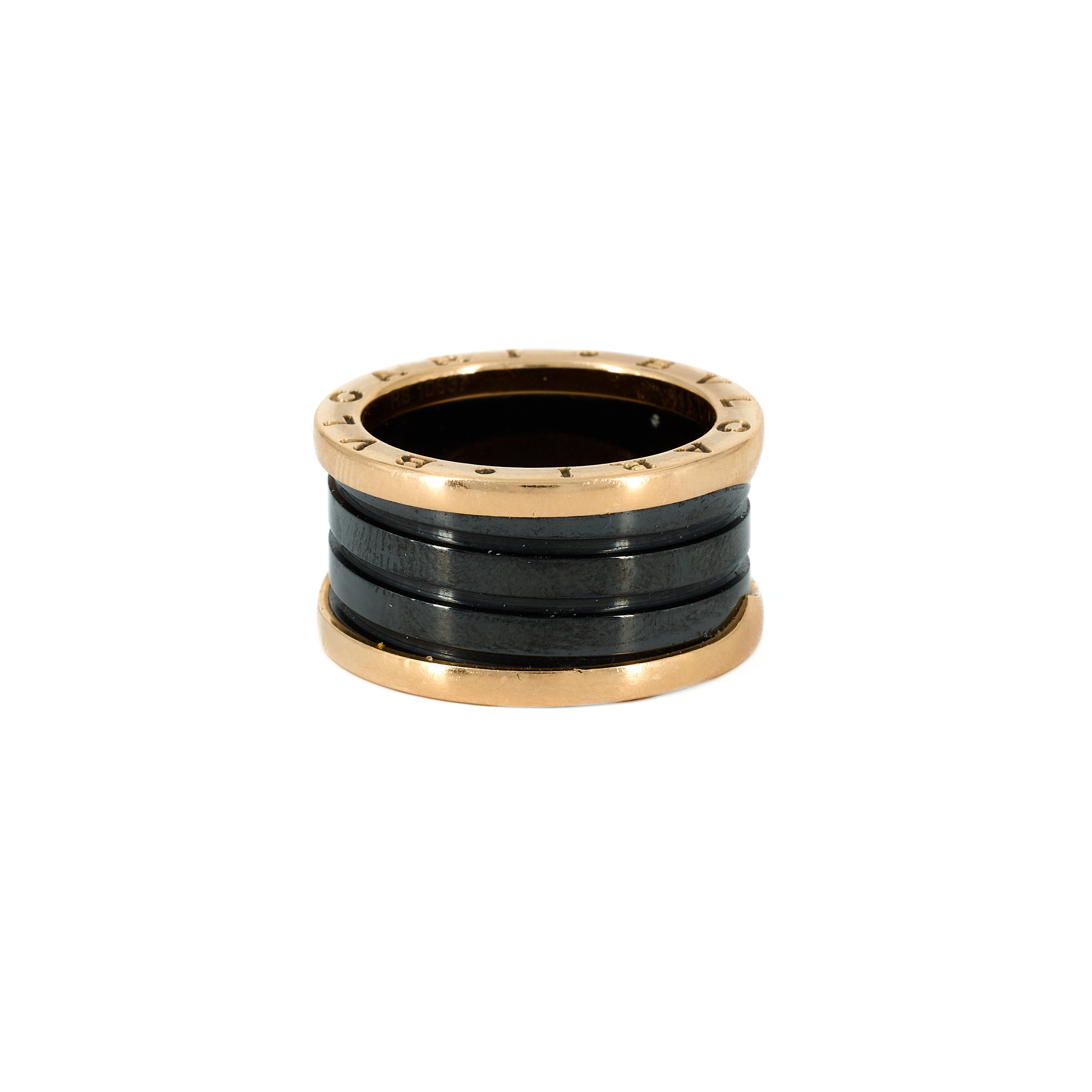 Material: 750/- Roségold, Punze, schwarze, glänzende Keramik.
