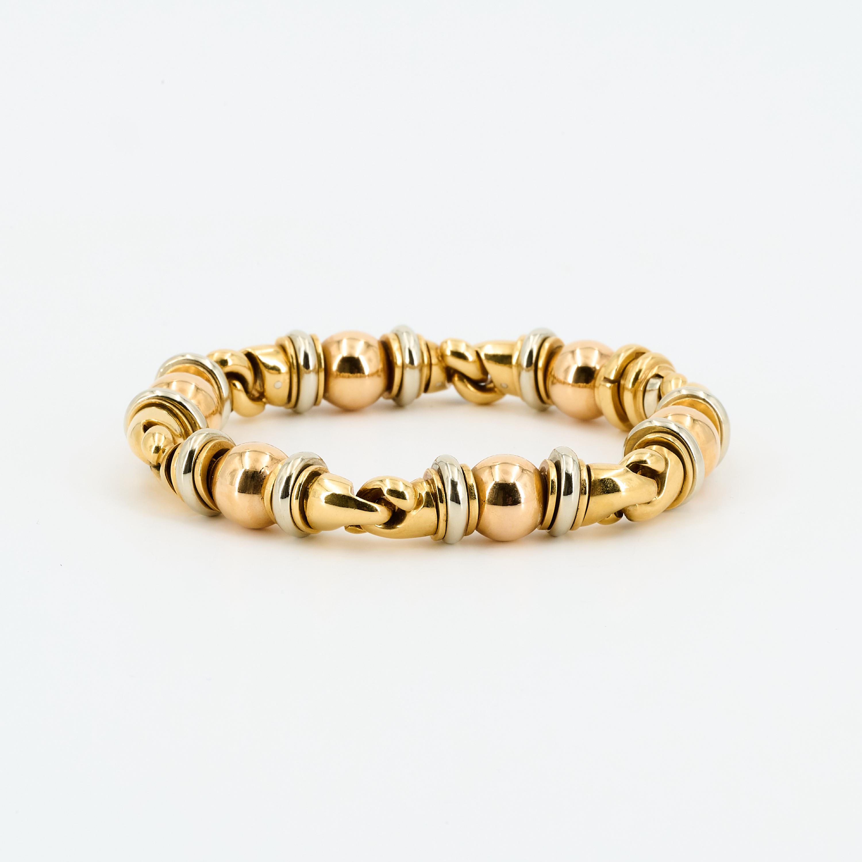 Beschreibung: Signiert "BVLGARI". Alternierende Dekorelemente in variierenden Goldtönen, die Kugeln