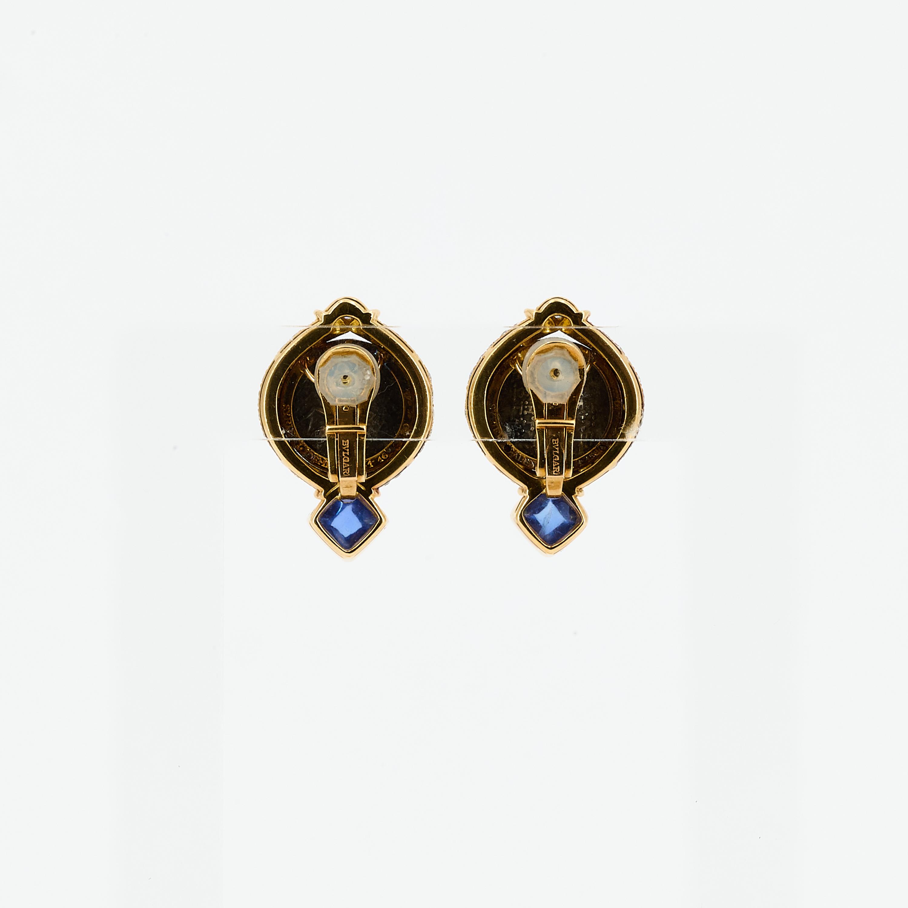 Beschreibung: Signiert "BVLGARI". In beiden Ohrclips mittig je eine antike Münze mit Darstellung eines Männerkopfes im Profil. Rückseitig im Goldrand um die eine Münze "SYRIEN DEMETRIOS 1. 162 150 v. chr.", um die andere "SYRIEN ALEXANDROS 1. 150 145 v. chr." eingraviert, wonach es sich bei den Portraitierten wohl um Demetrios I. (Soter) und Alexander I. Balas handelt