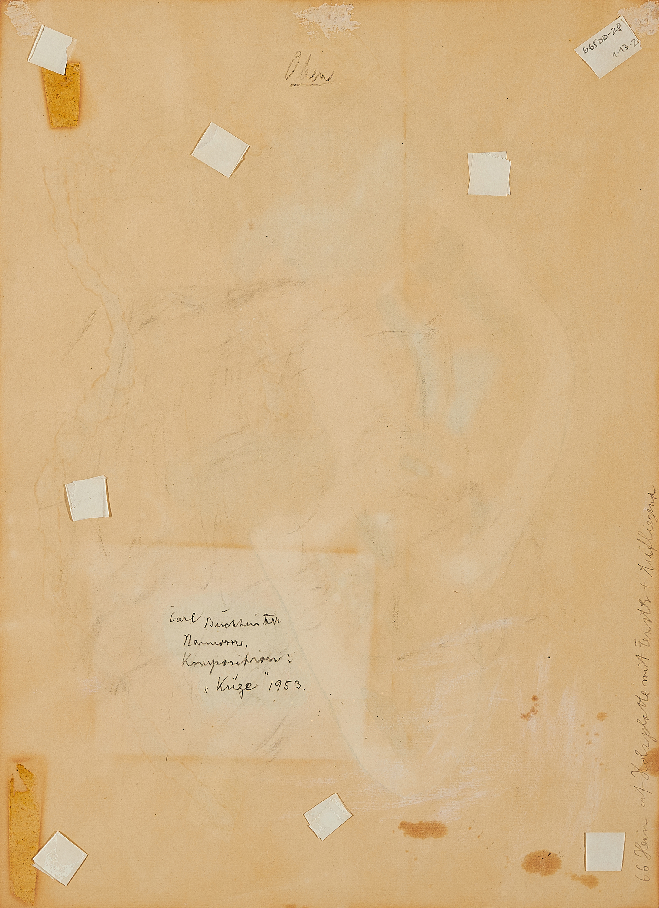 Bezeichnung: Signiert, bezeichnet, betitelt und datiert verso: Carl Buchheister, Hannover, Komposition: "Kuge" 1953.