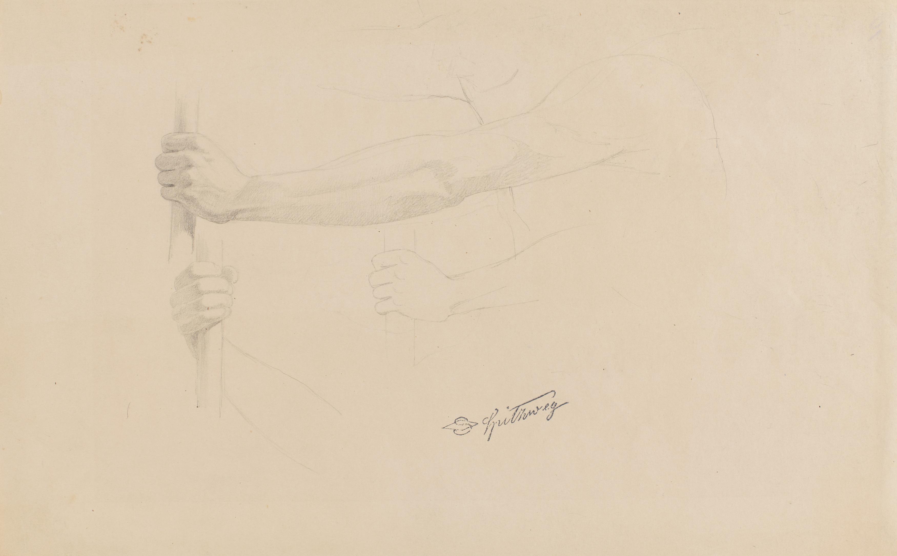 Titel: Zwei Zeichnung: Armstudie und Straßenszene.