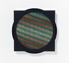 . Technik: (Farb-)Serigrafie auf zwei übereinanderliegenden Plexiglasscheiben.