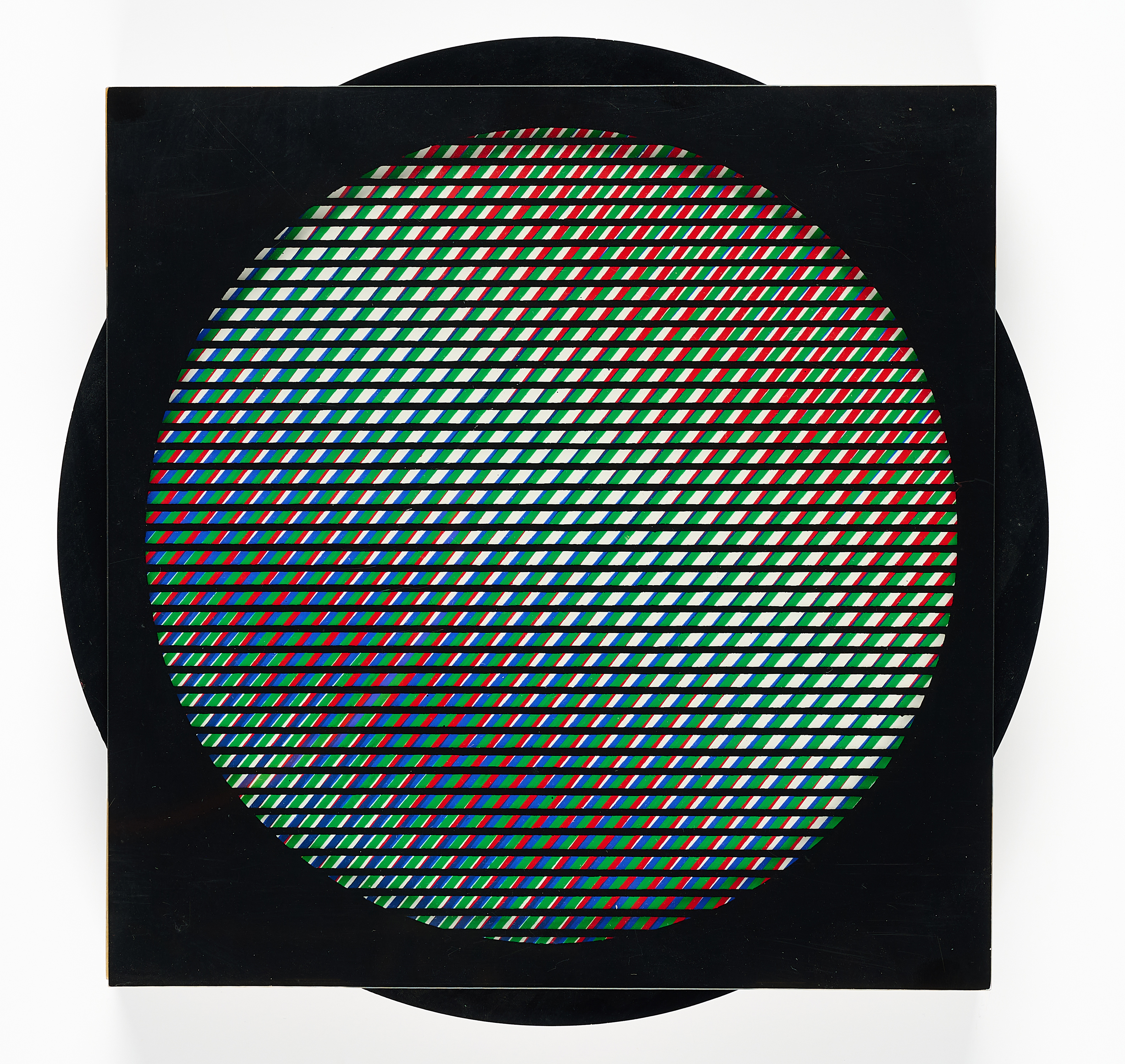 Technik: Serigrafie auf zwei übereinanderliegenden Plexiglasscheiben, auf Aluminium montiert.