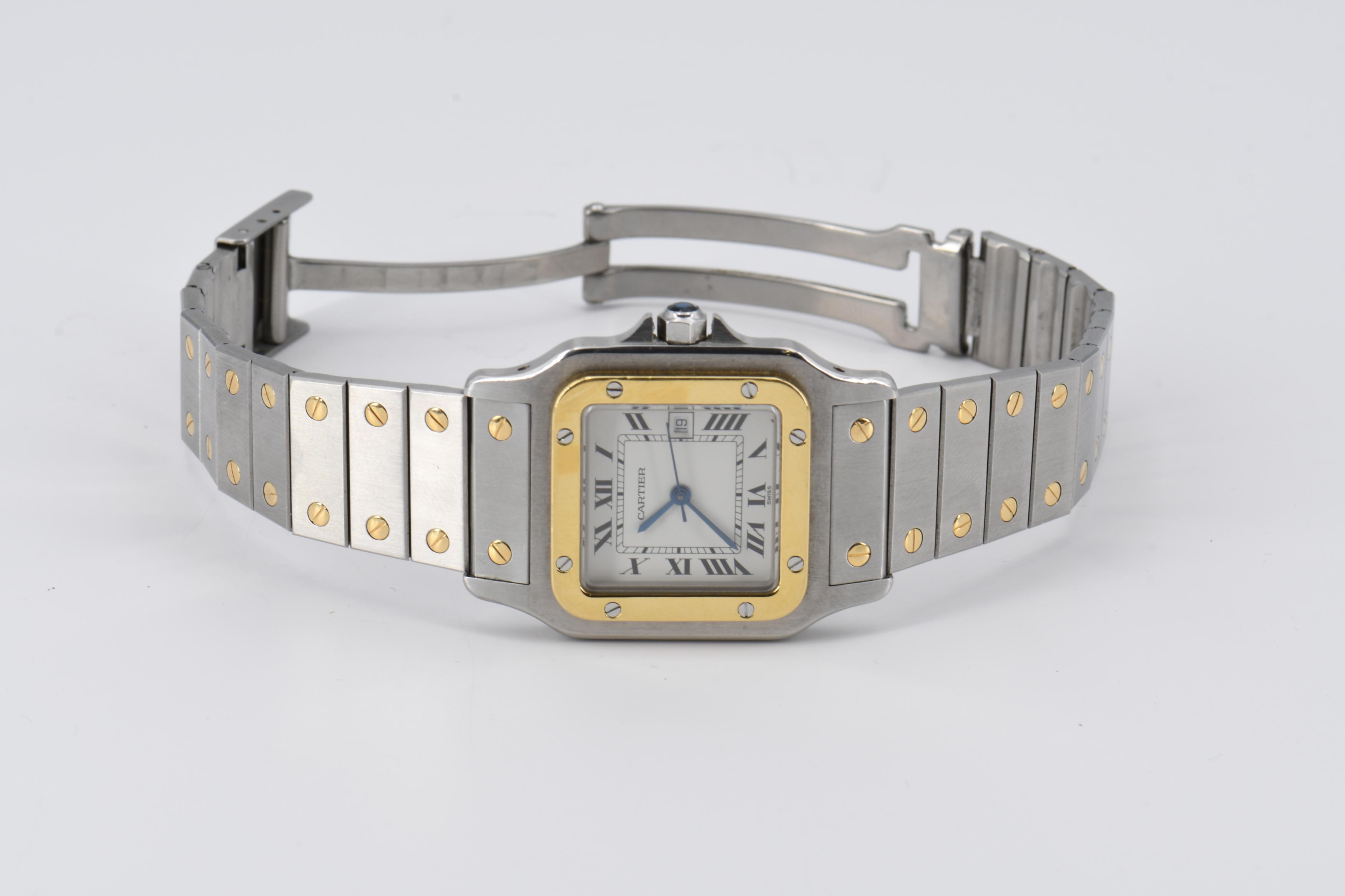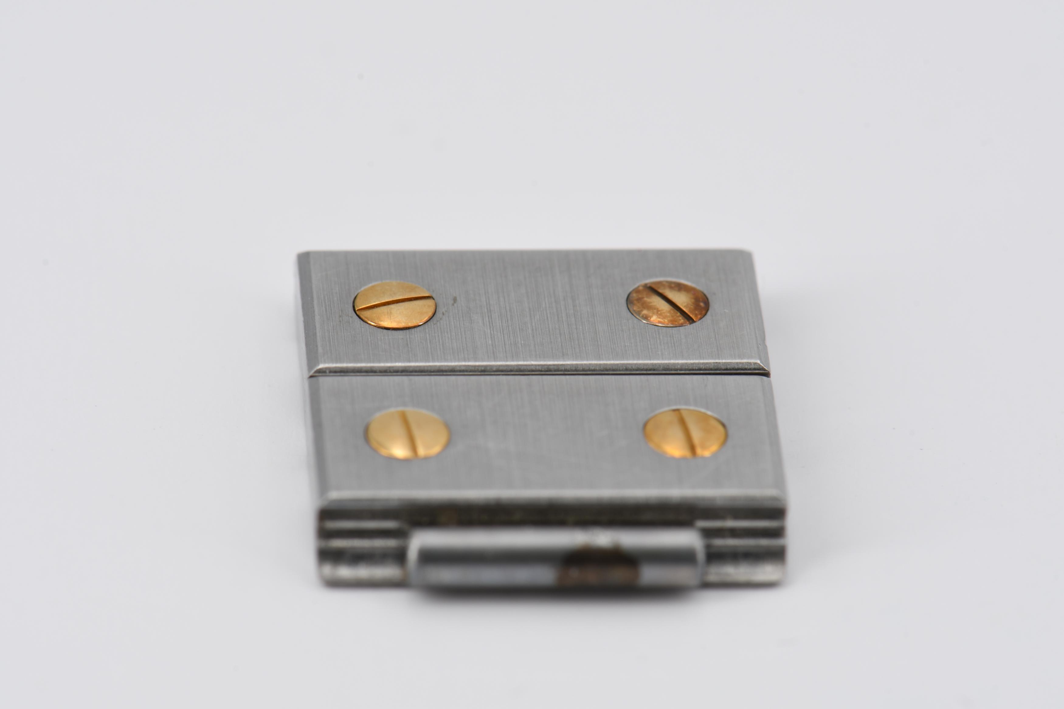 Gehäuse/Armband: Stahl, 750/- Gelbgold, Zffbl. weiß, Indizes schwarz lackiert, Zeiger gebläut.