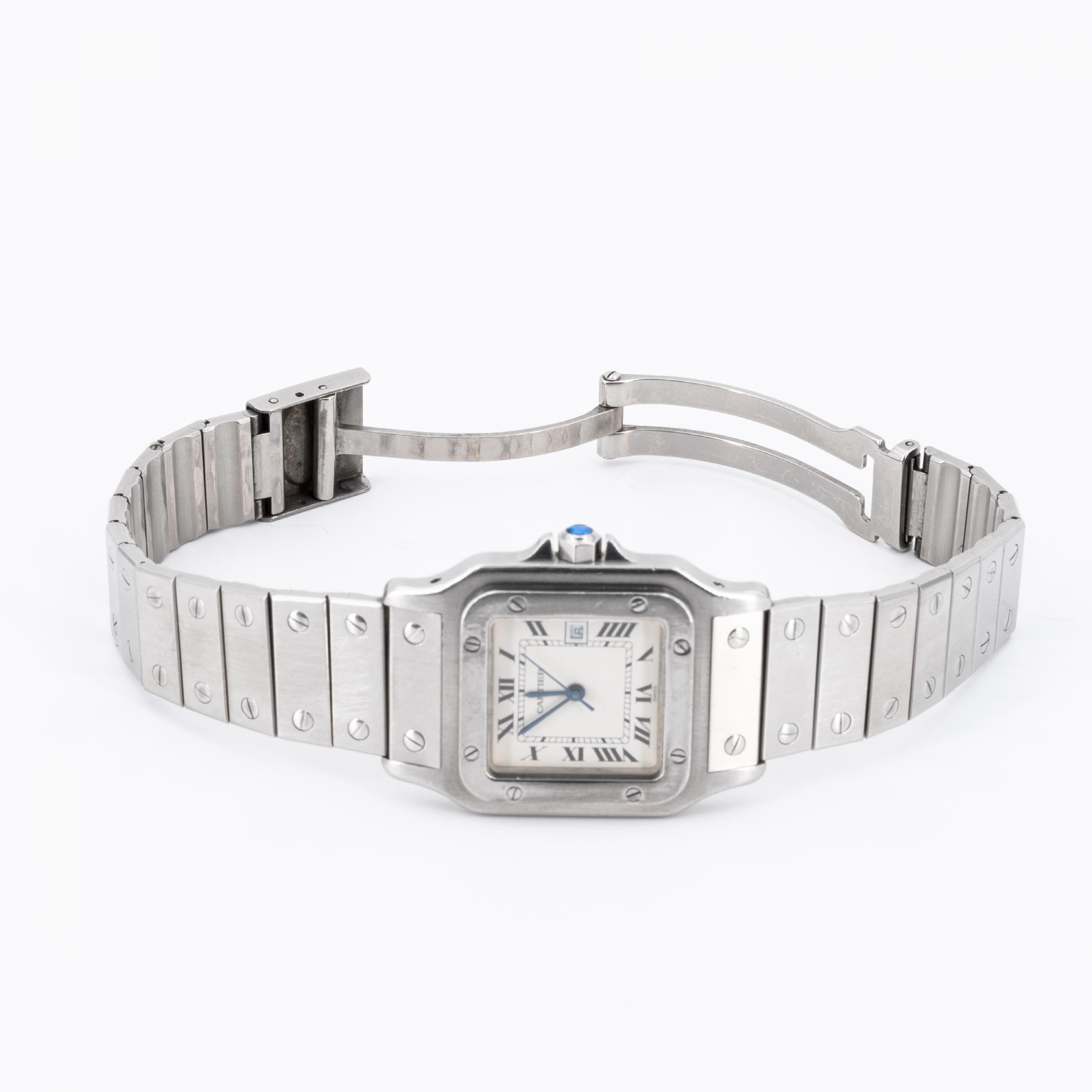 Gehäuse/Armband: Stahl, Gliederarmband mit Faltschließe, Zffbl. weiß, Zeiger gebläut, römische Ziffern schwarz.