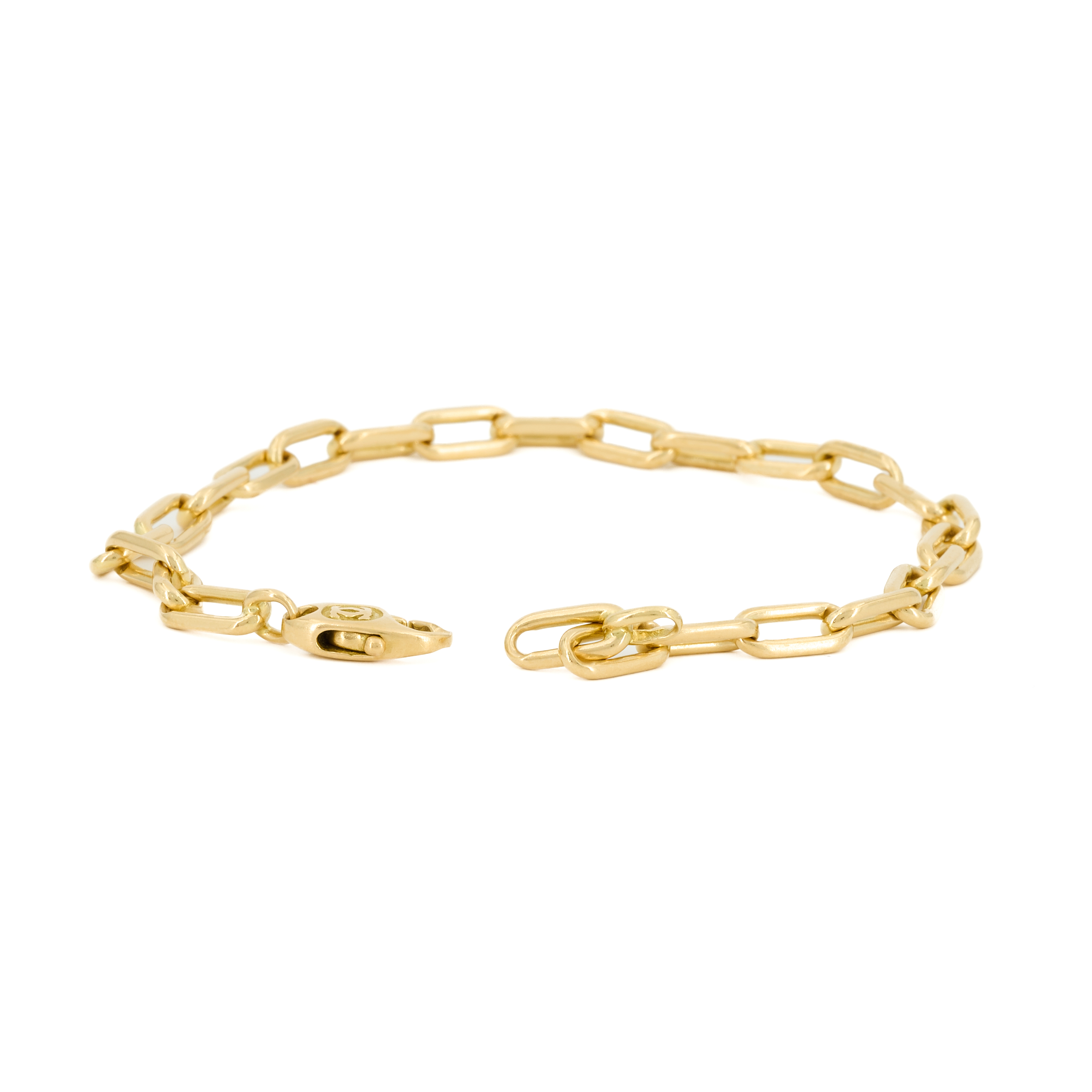 Beschreibung: Santos de Cartier Armband in Gelbgold, gefertigt aus geometrisch gestalteten Gliedern.