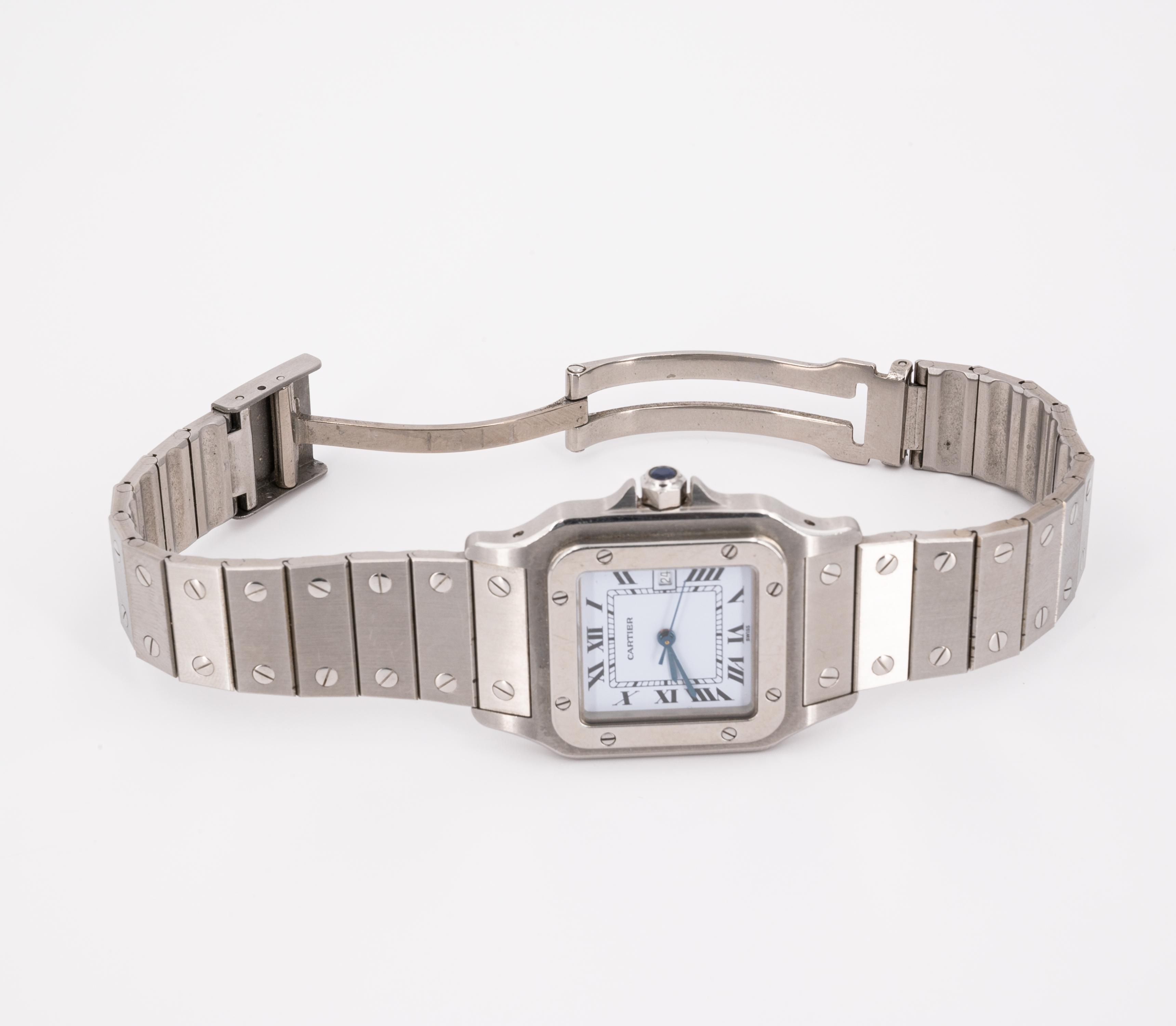 Gehäuse/Armband: Stahl, Gliederarmband mit Faltschließe, Zffbl. weiß, Zeiger gebläut, römische Ziffern schwarz.