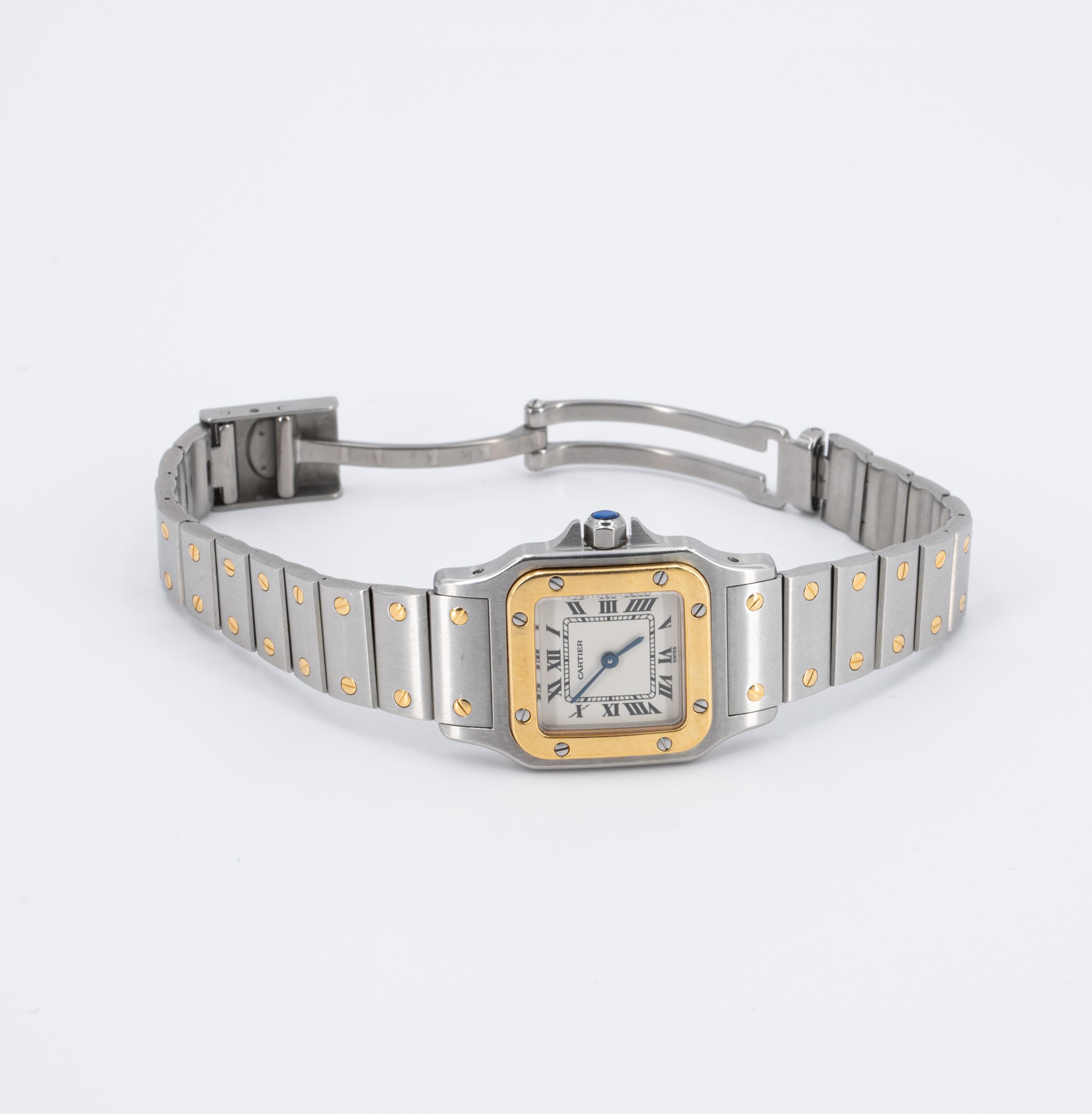 Gehäuse/Armband: Stahl, 750/- Gelbgold, Zffbl. weiß, schwarz lackiert, Zeiger gebläut, Indizes schwarz.