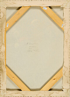 Minimale Aufriebe/Verschmutzungen im Zentrum (abwischbar). Minimale Farbabplatzungen an der linken Kante. Verso sowie an den Seitenkanten Wasserflecken (atelierbedingt). Ansonsten befindet sich die Arbeit in einem sehr guten Zustand.
