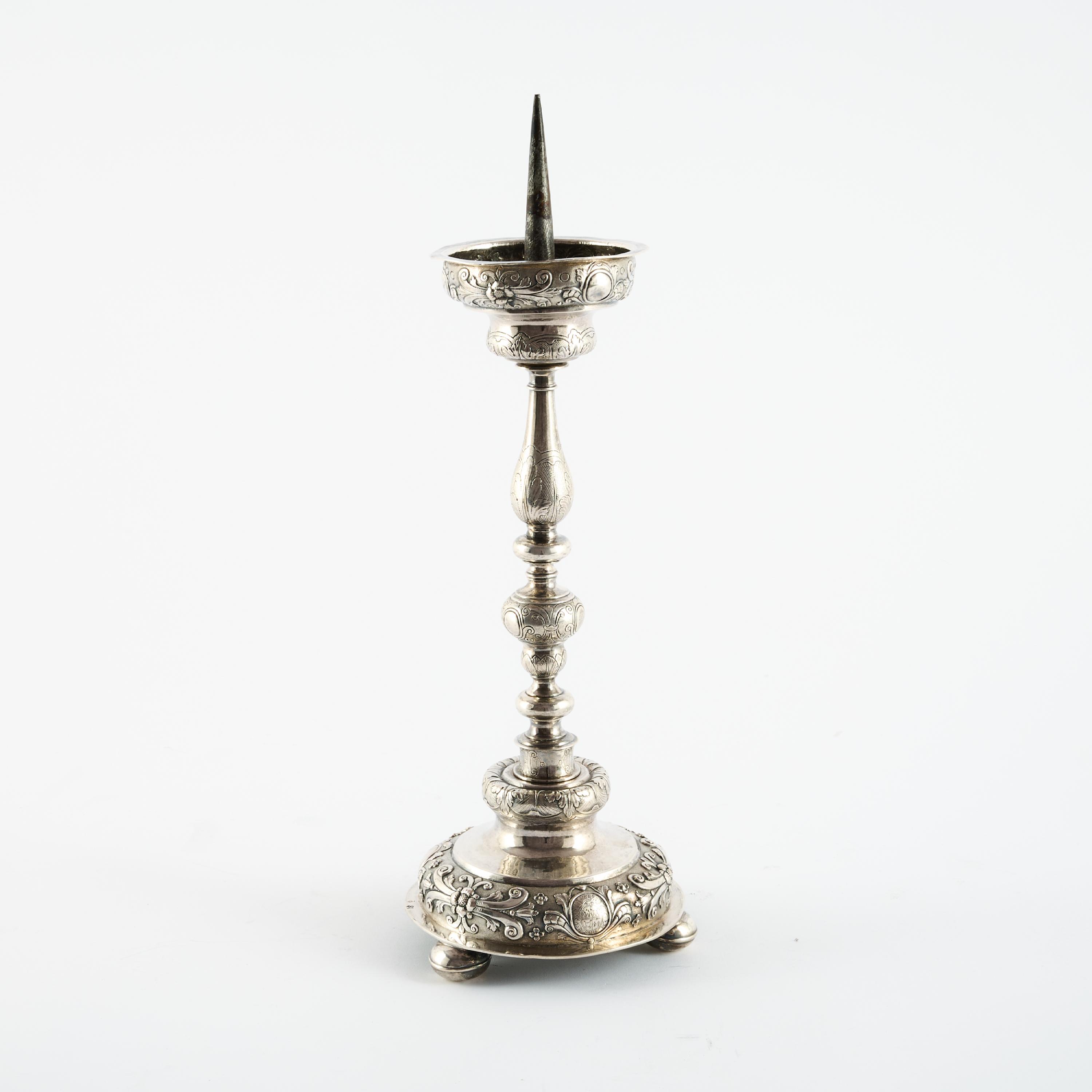 ALTARLEUCHTER MIT BALUSTERSCHAFT UND FLORALEM DEKOR.