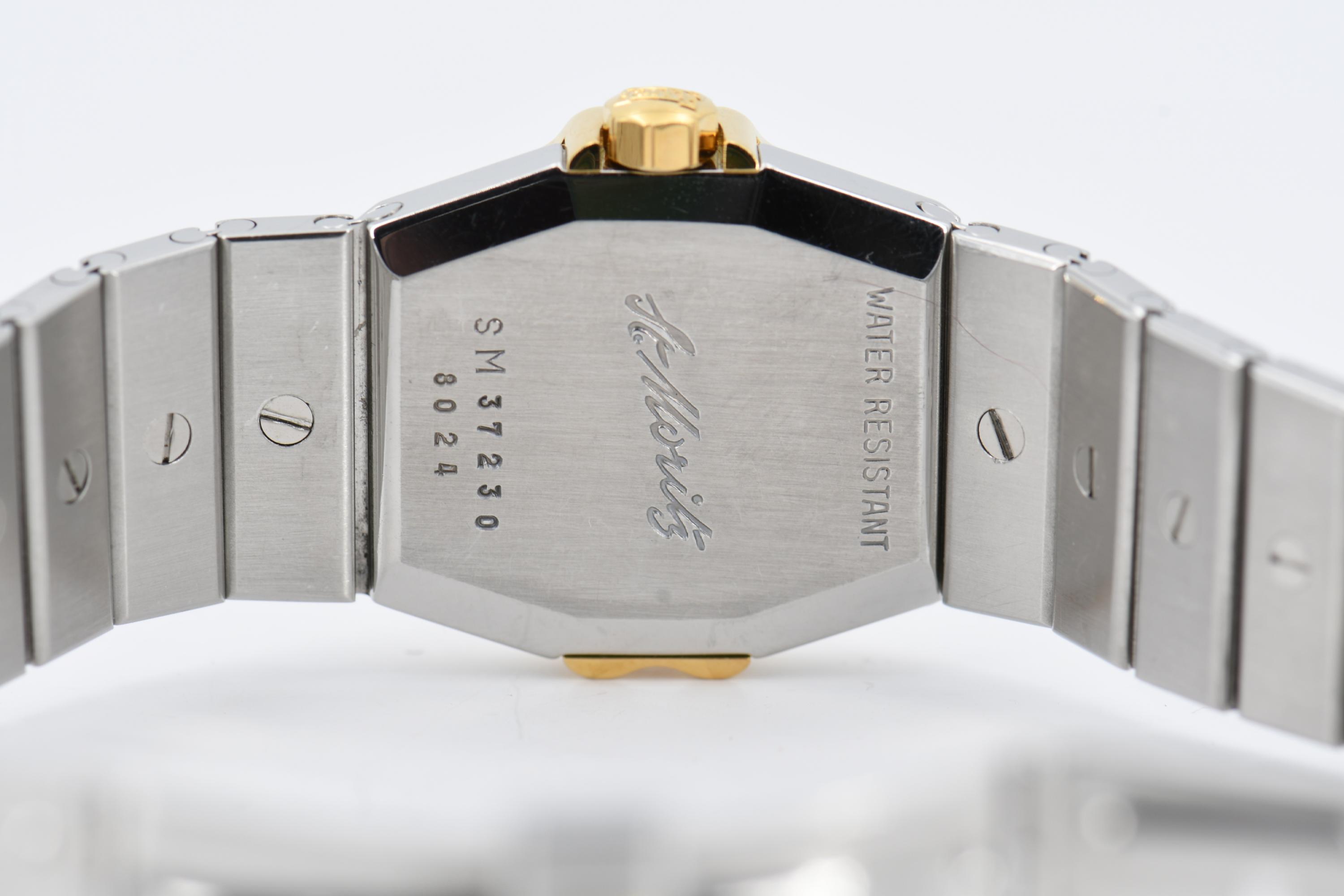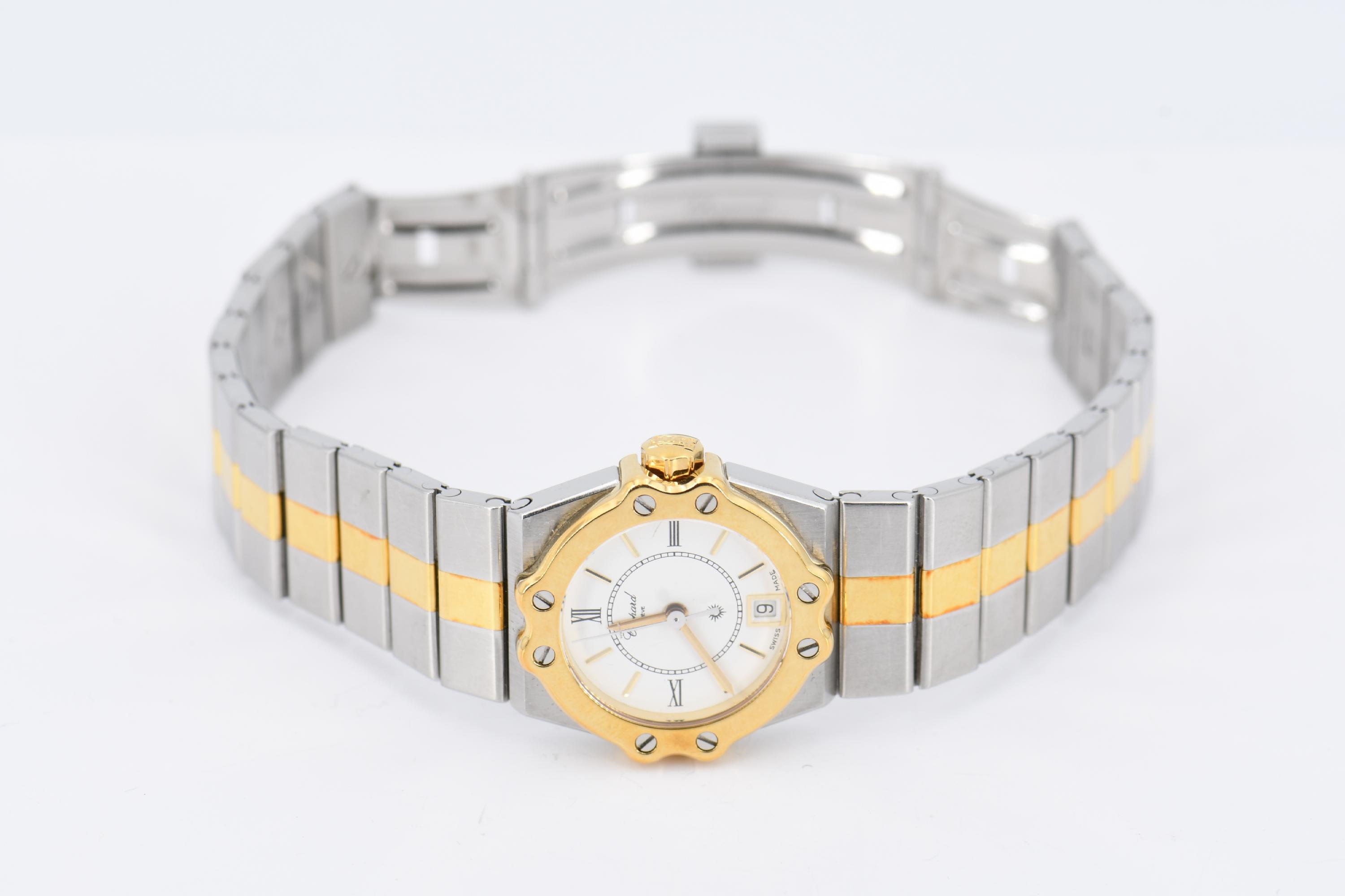 Gehäuse/Armband: Stahl, Gelbgoldlünette, Gliederarmband Stahl/Gelbgold mit Original Faltschließe, Zffbl. weiß lackiert.