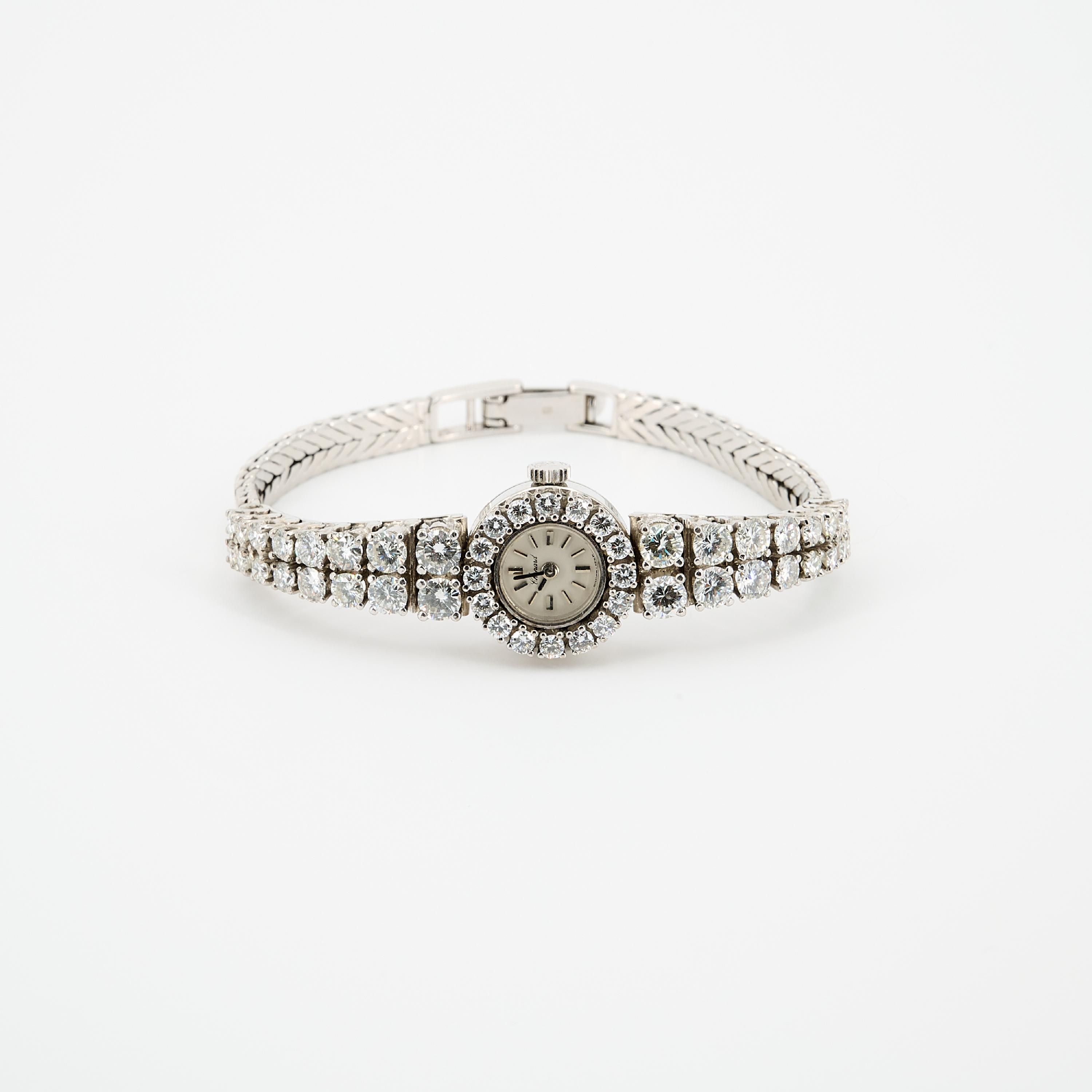 Beschreibung: 2-Zeiger-Armbanduhr besetzt mit 48 Brillanten zus. ca. 4,5 ct.