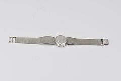 Gehäuse/Armband: 750/- Weißgold, Punze, Milanaisearmband, Zffbl. grau, Zeiger und Indizes silbern.