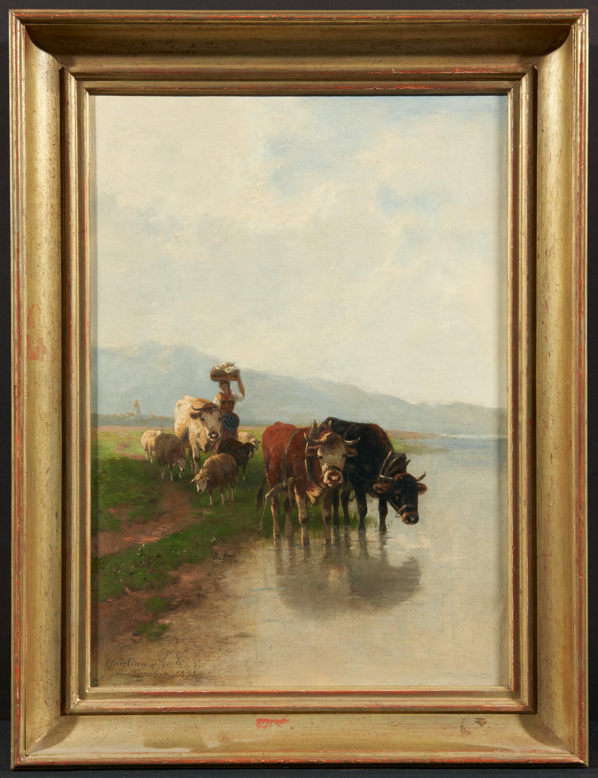 Titel: Junge Bäuerin mit ihrem Vieh.