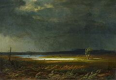 "Abenddämmerung im Bruch". Öl auf Leinwand. Doubliert. 46,5 x 67cm. Signiert und datiert unten rechts: C. Kröner pinx. 1858. Rahmen.