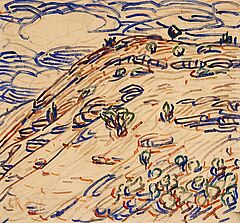 Ohne Titel (Landschaft bei Hagen/Westfalen). Aquarell auf leichtem Karton. 47,4 x 50,8cm. Monogrammiert und bezeichnet unten links: CR 7 H. Verso bezeichnet unten Mitte: Ch. Rohlfs Landschaft bei Hagen Westfal. Rahmen.