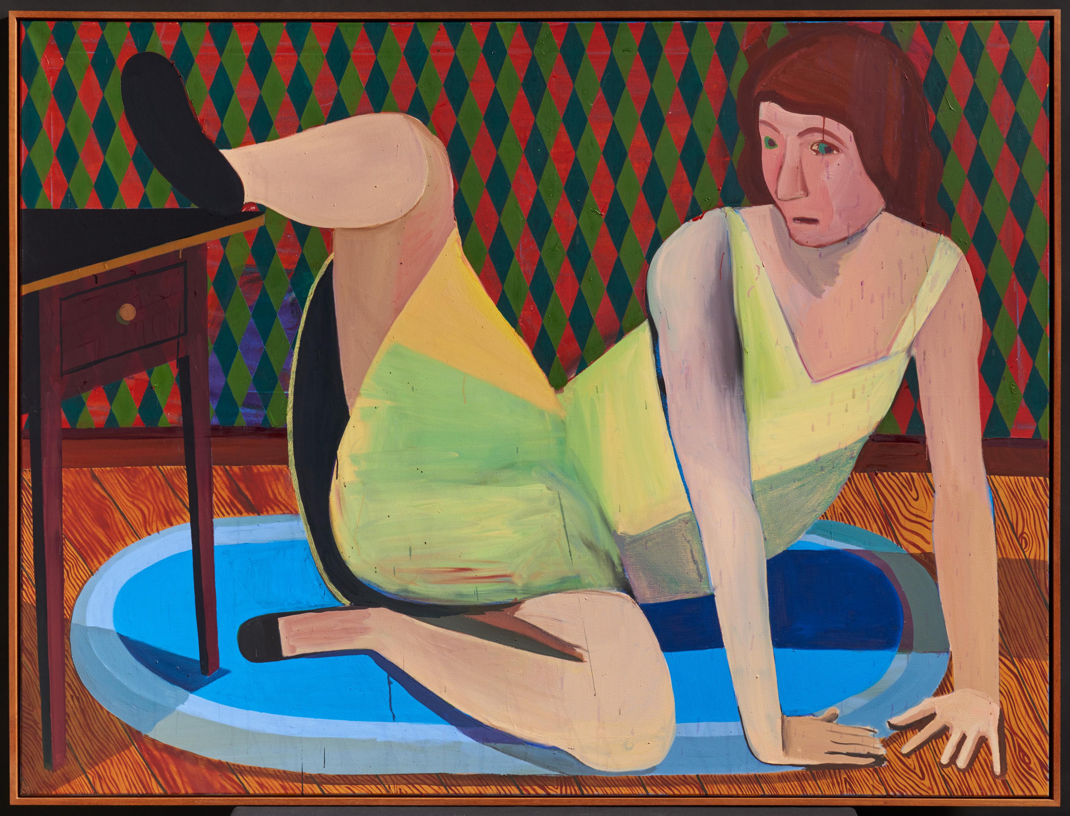 In der zum Aufruf kommenden, großformatigen Arbeit "Woman in yellow dress" aus dem Jahr 2006 fokussiert sich Ruckhäberle auf den Körper als solches. Die titelgebende Frau im gelben Kleid verdreht die Gliedmaßen auf unnatürliche Art. Das völlige Fehlen von Raumbezügen und Handlungssträngen lässt die Frau deplatziert wirken. Dabei wird deutlich, dass Ruckhäberle Raum und Figur trennt. Raum und Figur werden parallel nebeneinandergestellt, wobei der Raum der Realität entrückt und hermetisch abgeriegelt scheint.