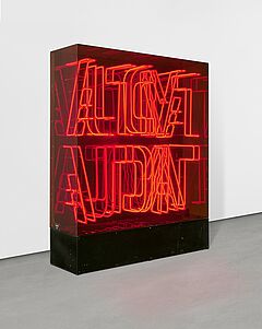 Bezeichnung: Typographisch signiert, datiert und betitelt auf zwei jeweils seitlich angebrachten Plaketten: Sockel/Rahmen: Sockel: 38 x 176 x 52cm (Gesamtmaß: 214 x 176 x 52cm).