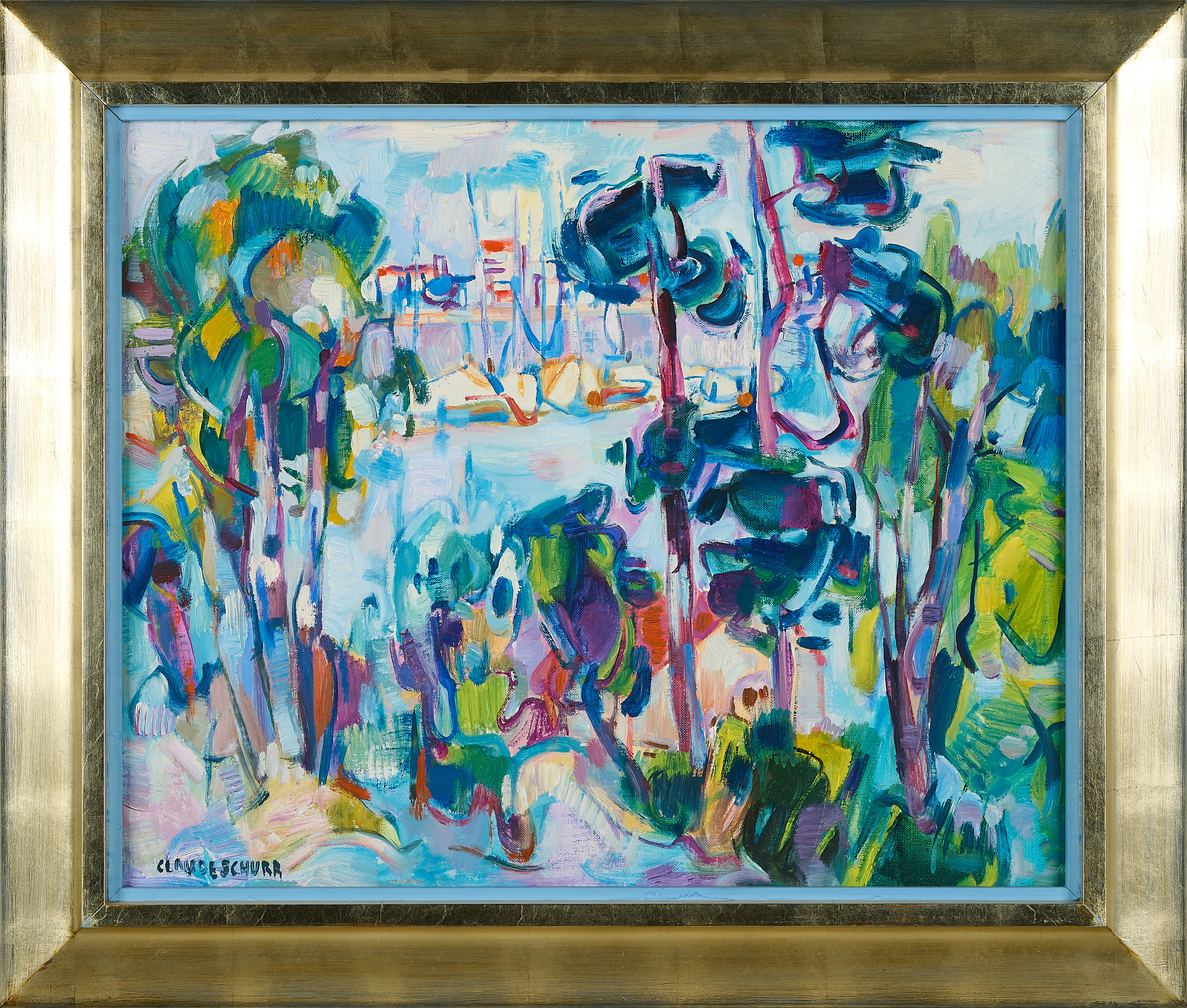Bezeichnung: Signiert unten links: CLAUDE SCHURR. Sowie betitelt und signiert verso: "HORIZON GOLFF-JUAN" CLAUDE SCHURR.