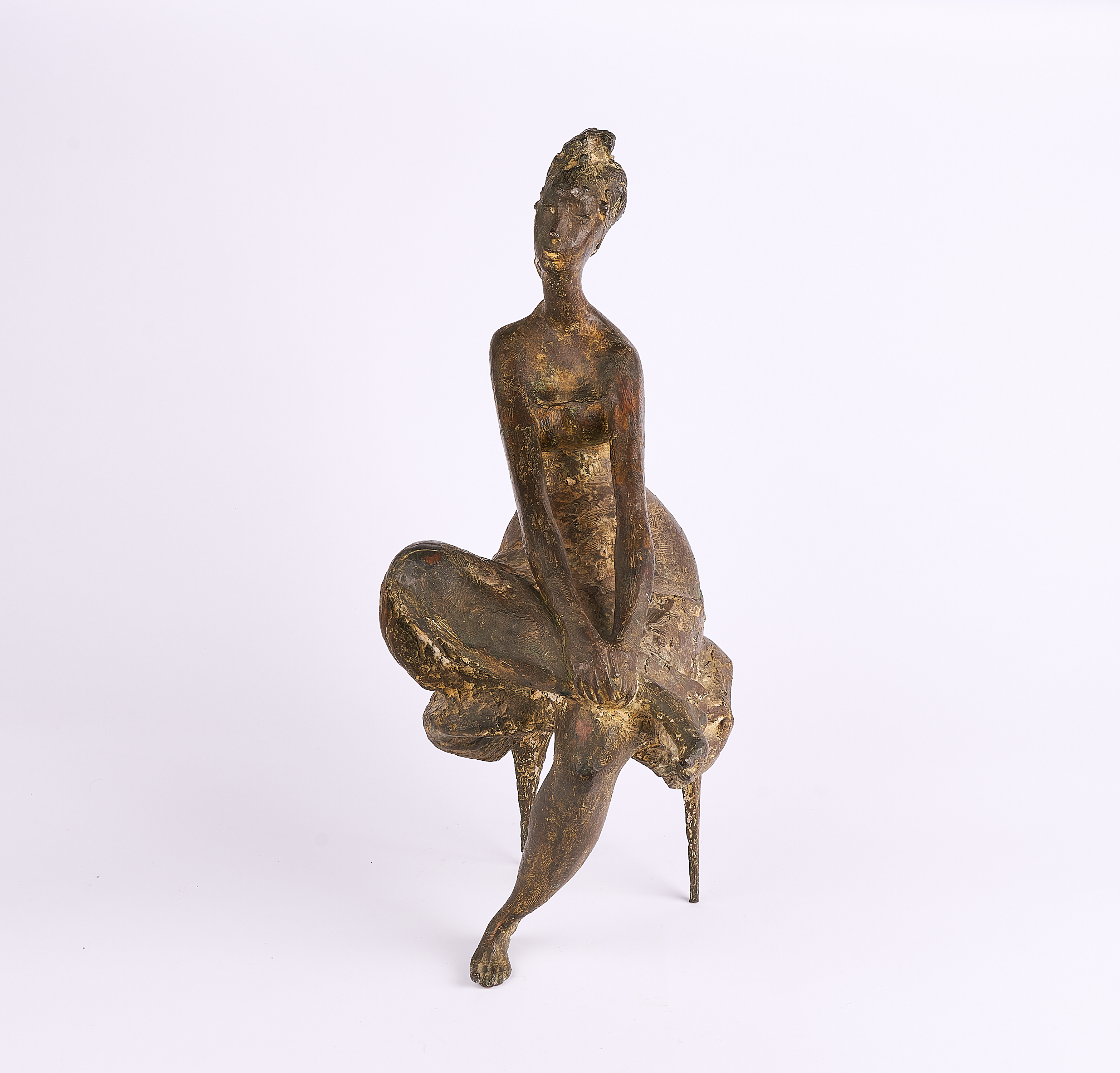 Vereinzelt minimale Verschmutzungen. Punktuell minimale Korrosionsspuren, u.a. im Nacken und im Schoß. Vereinzelt leichte Gipsreste in den Vertiefungen, vor allem unter dem Rock. Ansonsten sehr guter Zustand.