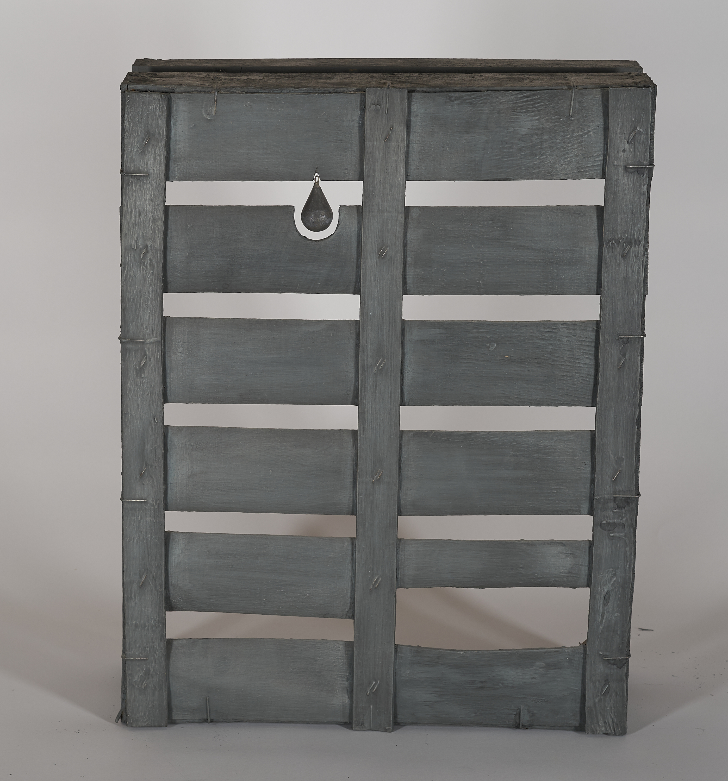 Ohne Titel. 1977. Assemblage (Acryl auf Holzkiste, Blei, Draht) 50 x 39 x 16,5cm. Signiert und datiert im Inneren der Kiste: C.O. Paeffgen 77. Darüber gewidmet.