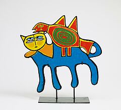 Corneille ('Cornélis van Beverloo') 1922 Lüttich - 2010 Auvers-sur-Oise/Frankreich Chat bleu avec l'oiseau rouge. Siebdruck auf Metall, auf Metallständer. ...