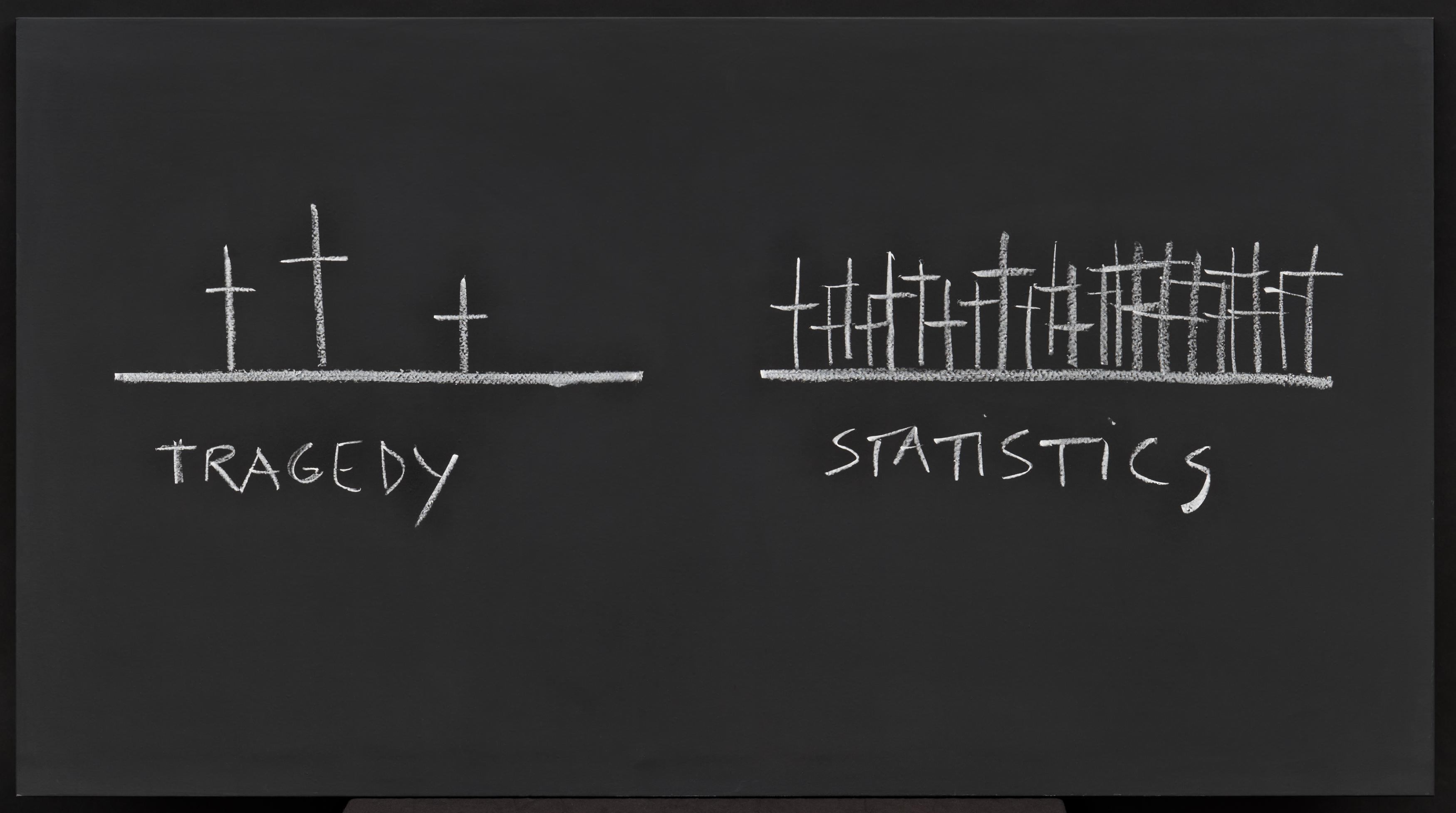 Technik: Kreide auf schwarzer Holztafel.