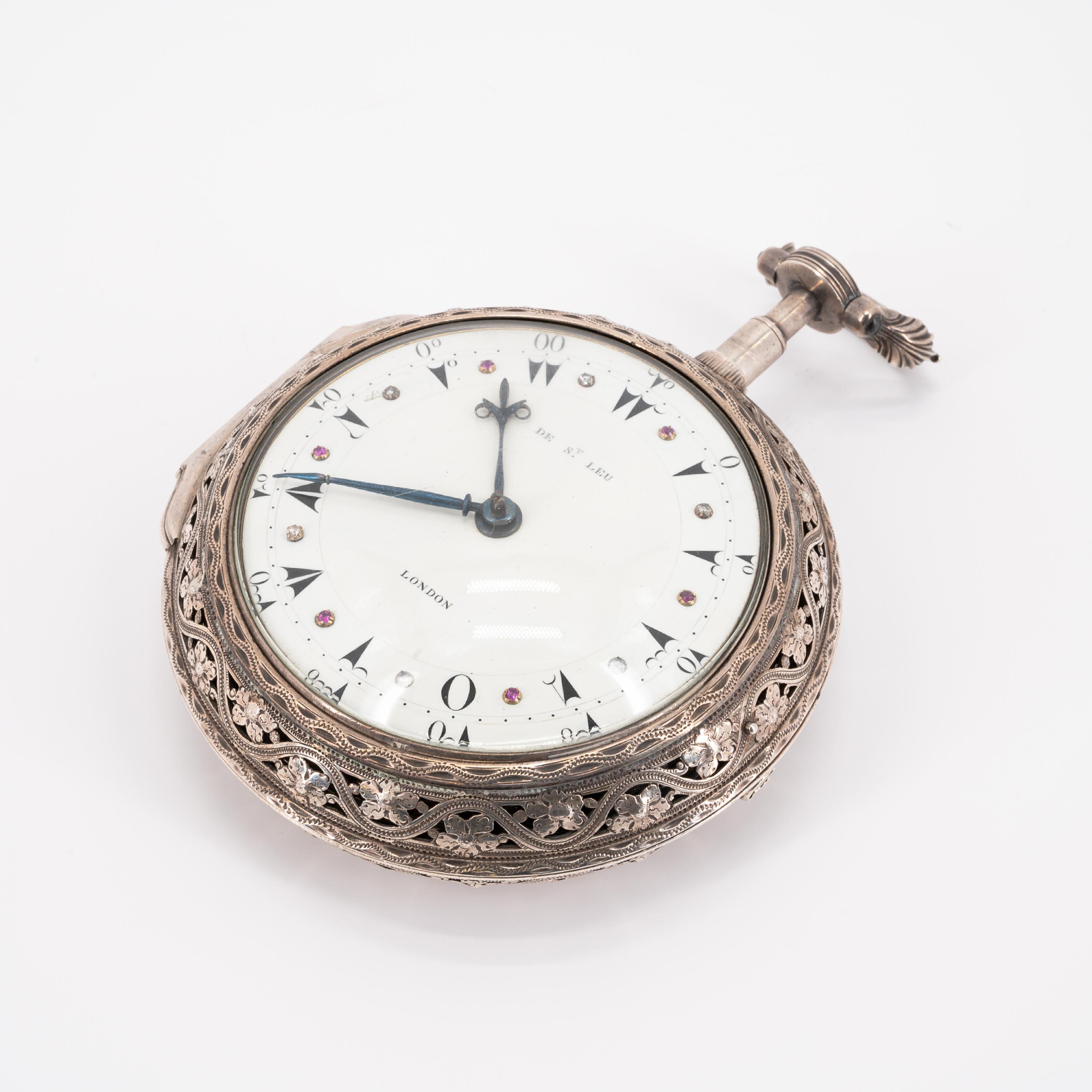 "De St. Leu London". Silbergehäuse BZ für London 1785, MZ "WW" wohl für William West, Jerusalem Court, St. John's Square.