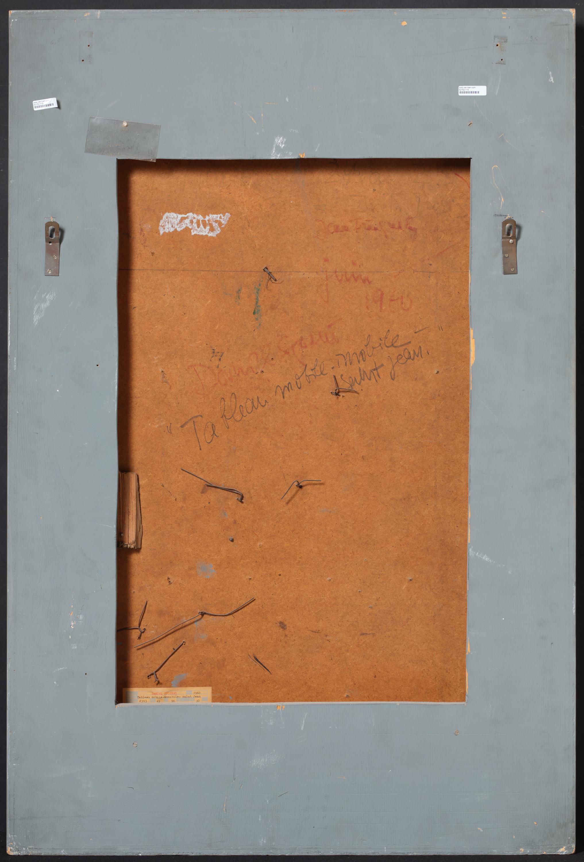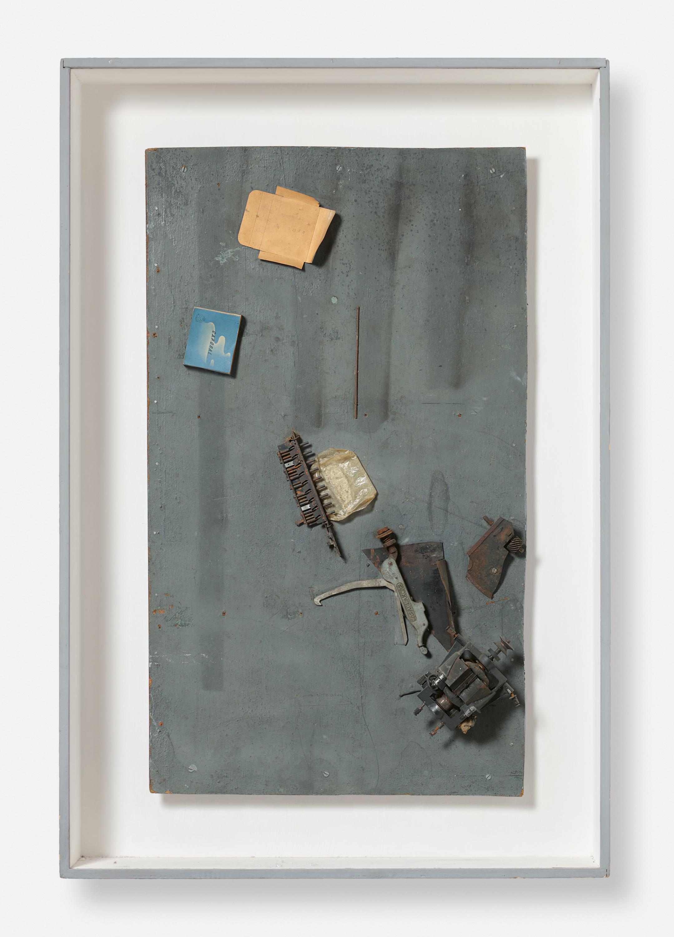 Bezeichnung: Bezeichnet, datiert, signiert und betitelt verso: Tableau Jean Tinguely juin 1960 Daniel Spoerri Tableau mobile. imobile - Salut Jean. Sowie weitere unleserliche Bezeichnungen.