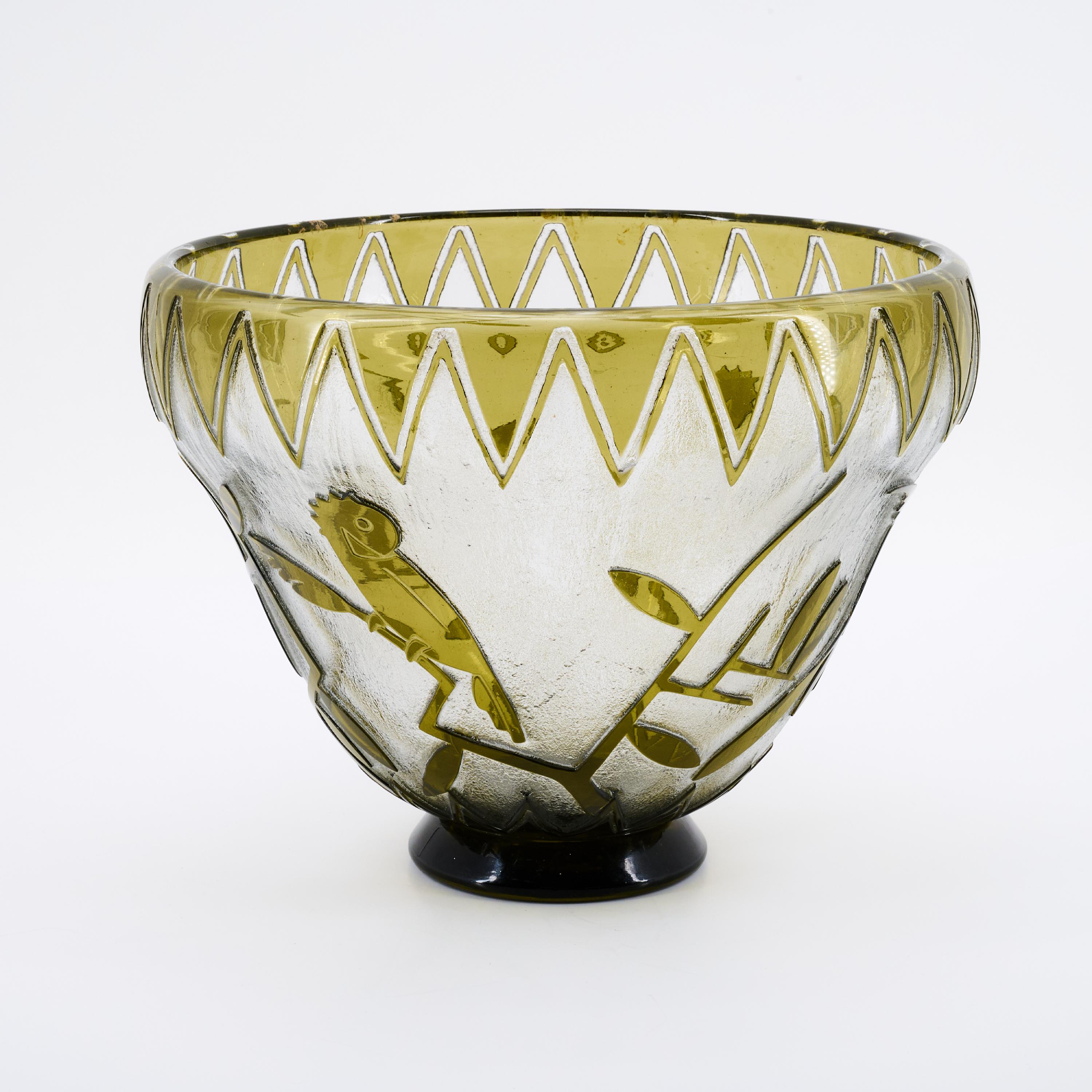 Material: Farbloses Glas, grüner Überfang, geätzt.