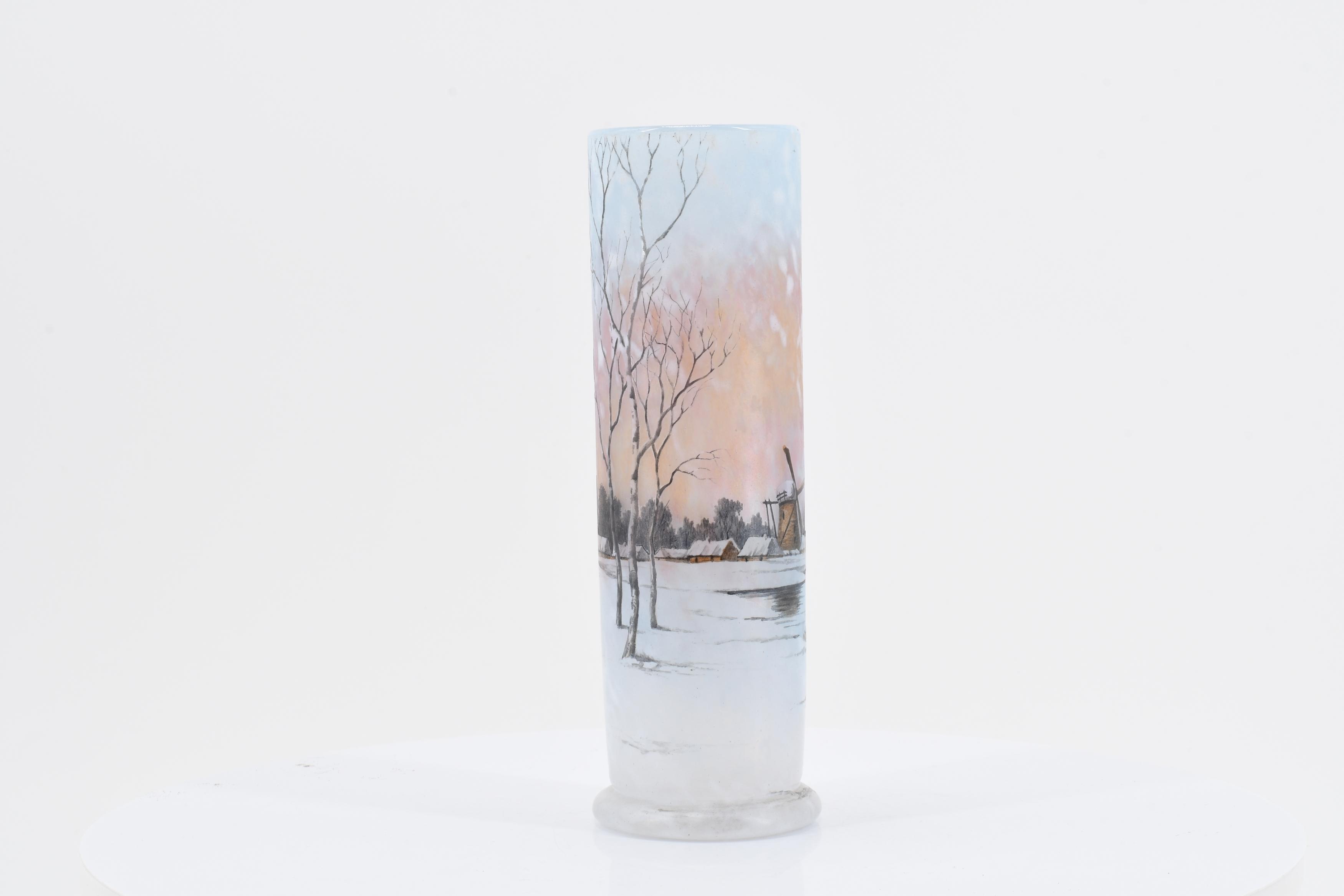 KLEINE VASE MIT WINTERLANDSCHAFT.