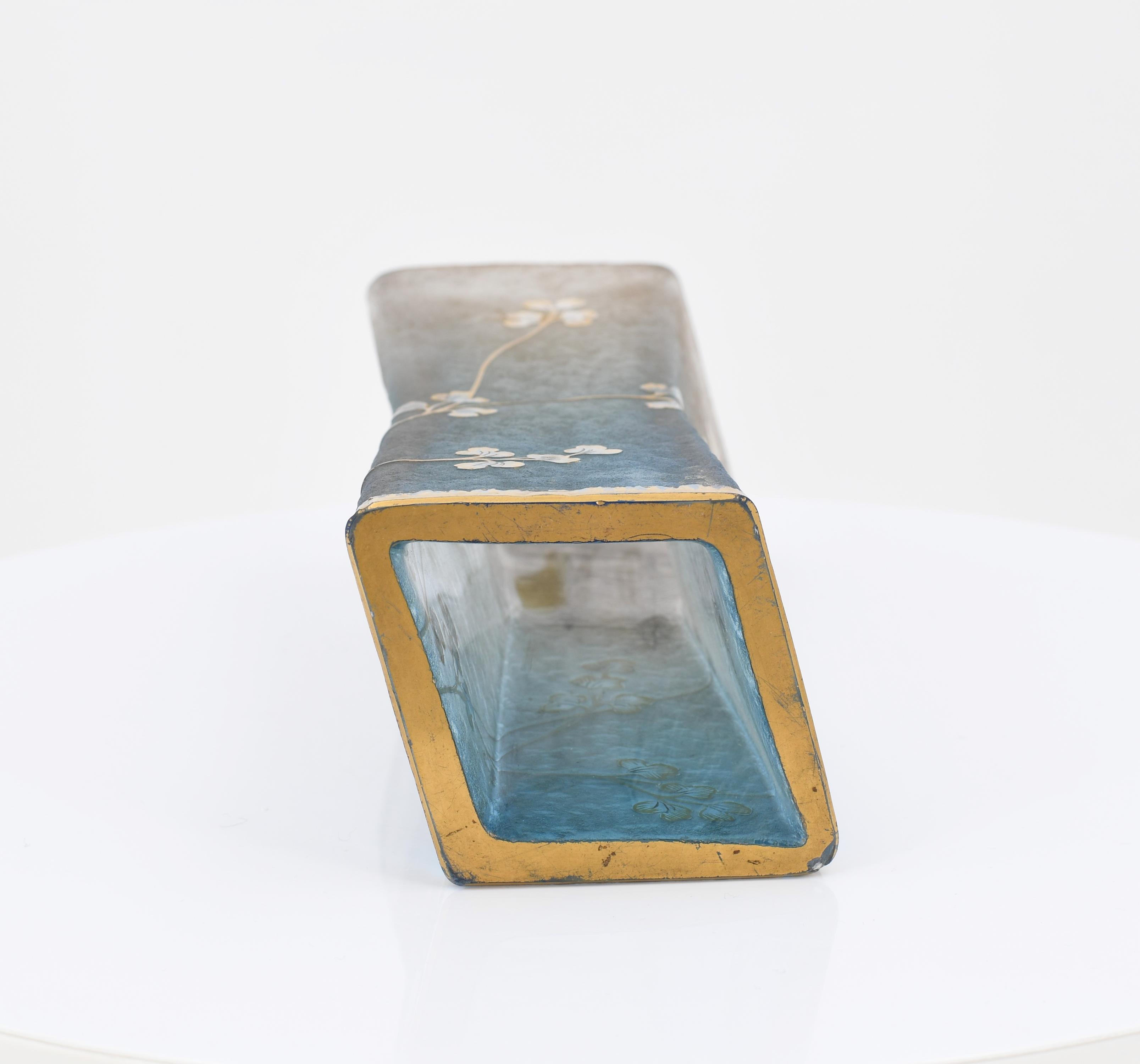 herausgeätzte, polierte und goldkonturierte Blütenzweige.