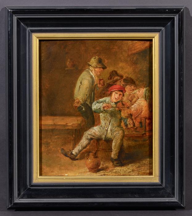 Teniers, David d.J. 1610 Antwerpen - 1690 Brüssel - In der Art des Zechende Bauern. Öl auf Holz. 25,5 x 21,5cm. Rahmen. Provenienz: ...