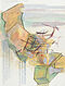"Accelerator for evil thoughts". 1983. Mischtechnik (Ölfarbe, Farbkreiden, Silberstift und Grafit) auf Büttenkarton. 97 x 127cm. Signiert und datiert entlang der linken Blattkante: Dennis Oppenheim 1983. Betitelt, datiert und bezeichnet rechts: ACCELERATOR FOR EVIL TOUGHTS 1983. Poject for Serra D. Felice. New York. Darunter Angaben zur Größe und zum Material.