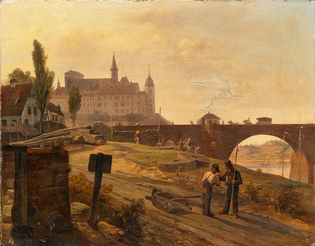 Meißen. Blick auf die Albrechtsburg und die alte Elbbrücke. Öl auf Leinwand. 31 x 40cm.