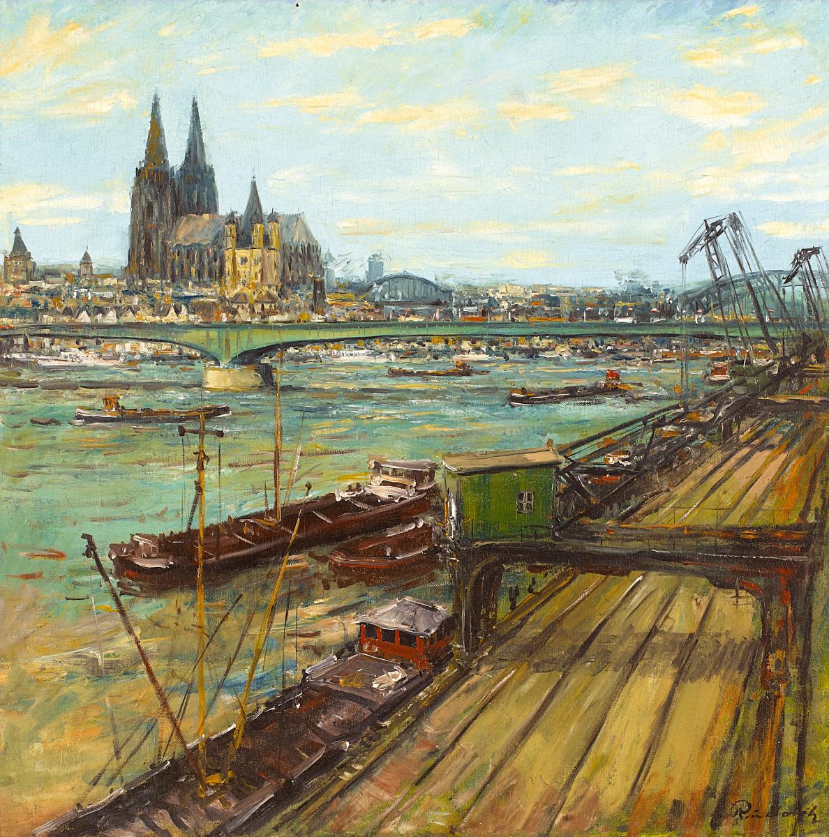 Ansicht von Köln. Unten rechts: Rudolph. Öl auf Leinwand. 70,5 x 70,5cm. Rahmen.