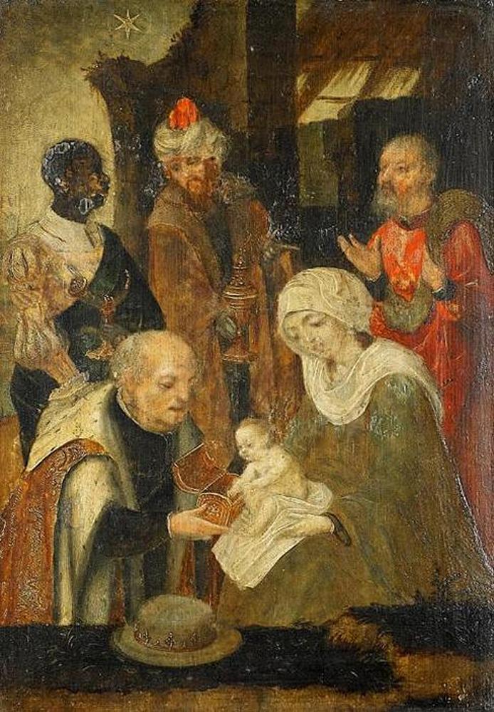 Die Anbetung der hl. drei Könige. Öl auf Eichenholz. 34 x 24cm. Rahmen.
