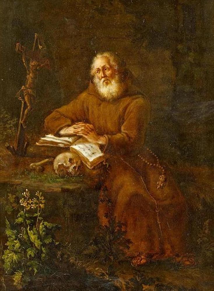 Einsiedlermönch. Öl auf Karton. 26,5 x 20cm. Rahmen.