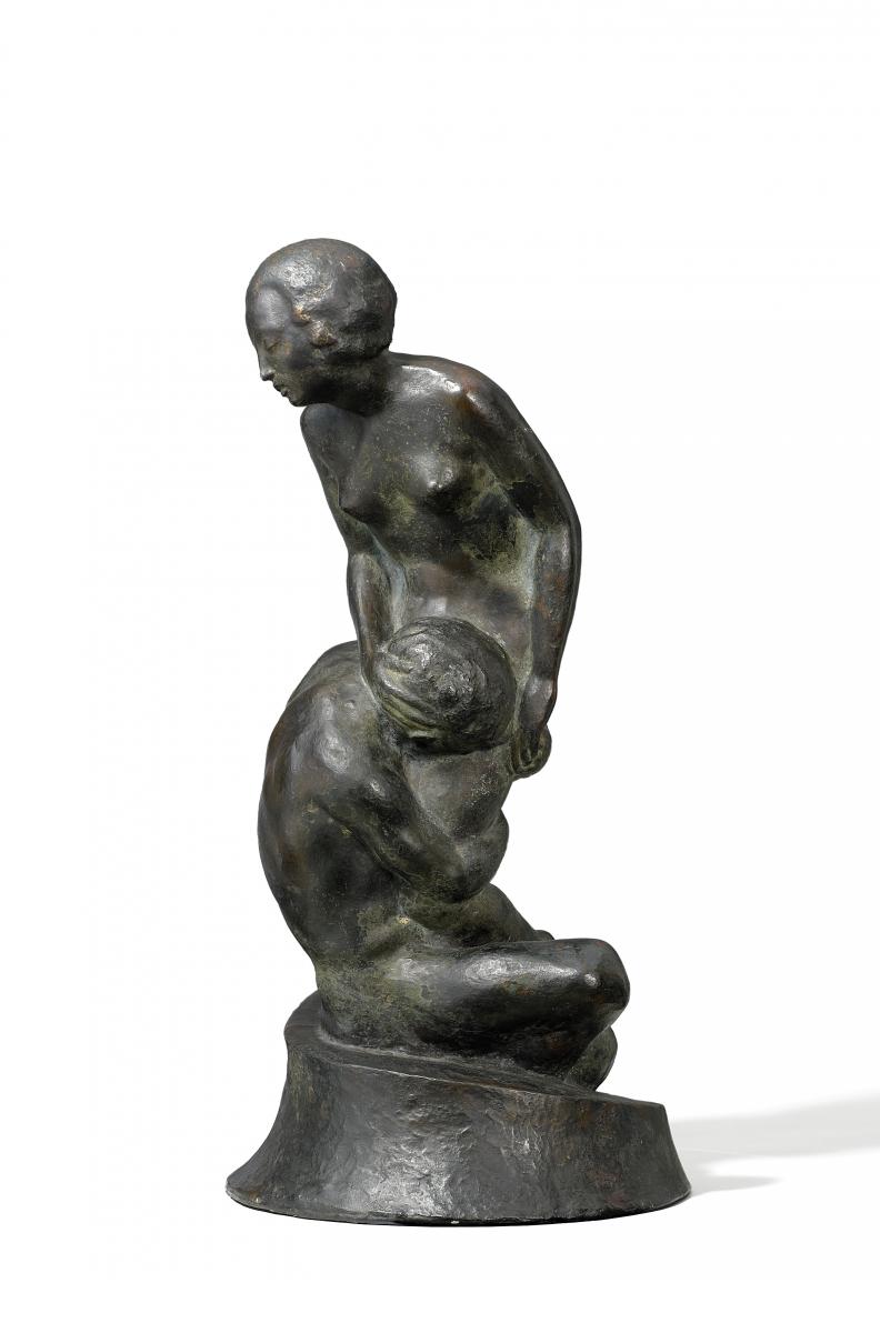 Trauerndes Paar. Bronze. Höhe: 50cm. Bezeichnet auf der Plinthe: 19Sigl31.