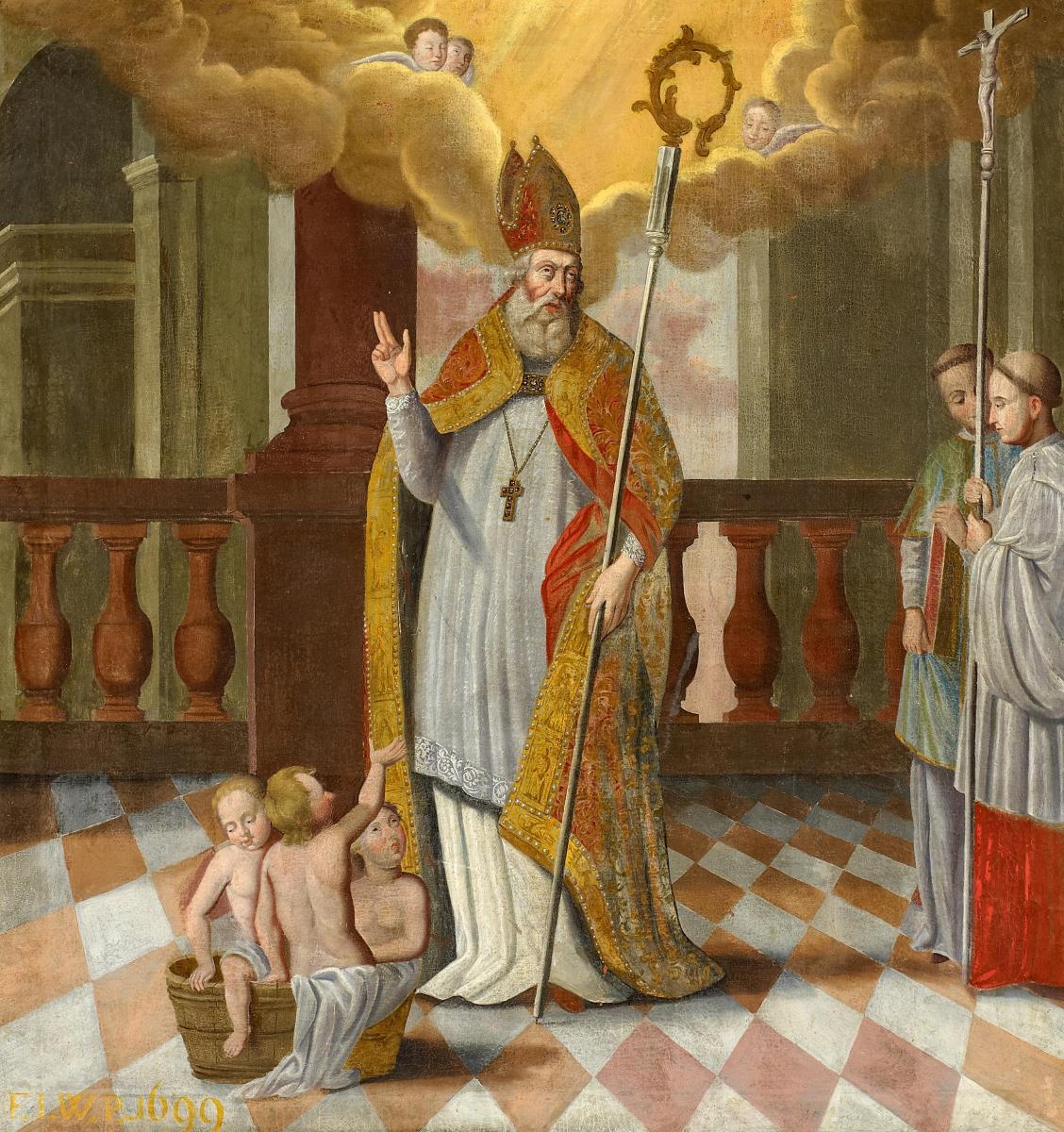 Der heilige Nikolaus, Bischof von Myra. Öl auf Leinwand. 114 x 108cm. Unten links: F. I. W. P. 1699. Rahmen.