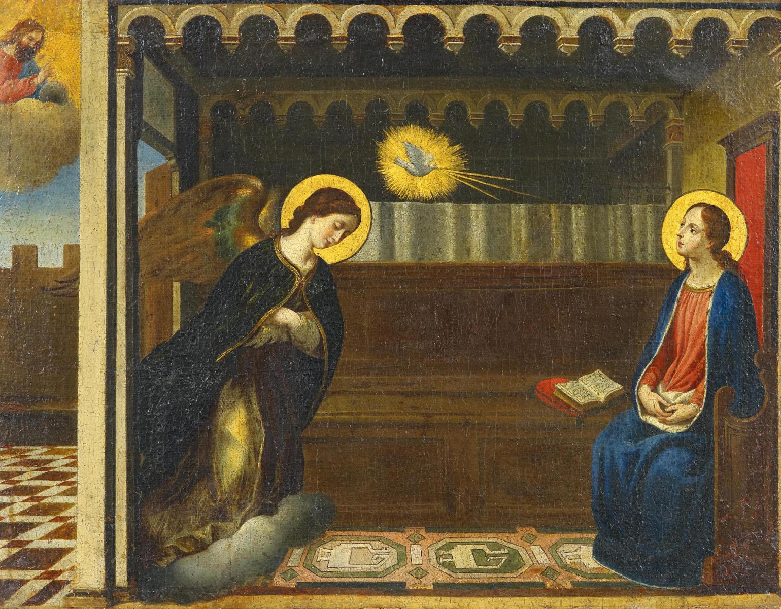 Verkündigung Mariens. Öl auf Leinwand. 49,5 x 67,5cm. Rahmen.