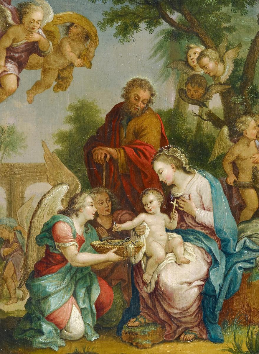 Anbetung. Öl auf Holz. 36 x 28cm. Rahmen.