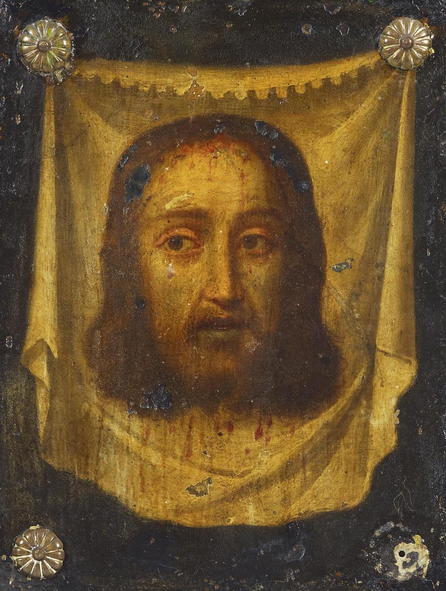 Schweißtuch der Veronika. Öl auf Metallblech. 18,5 x 14cm. Rahmen.