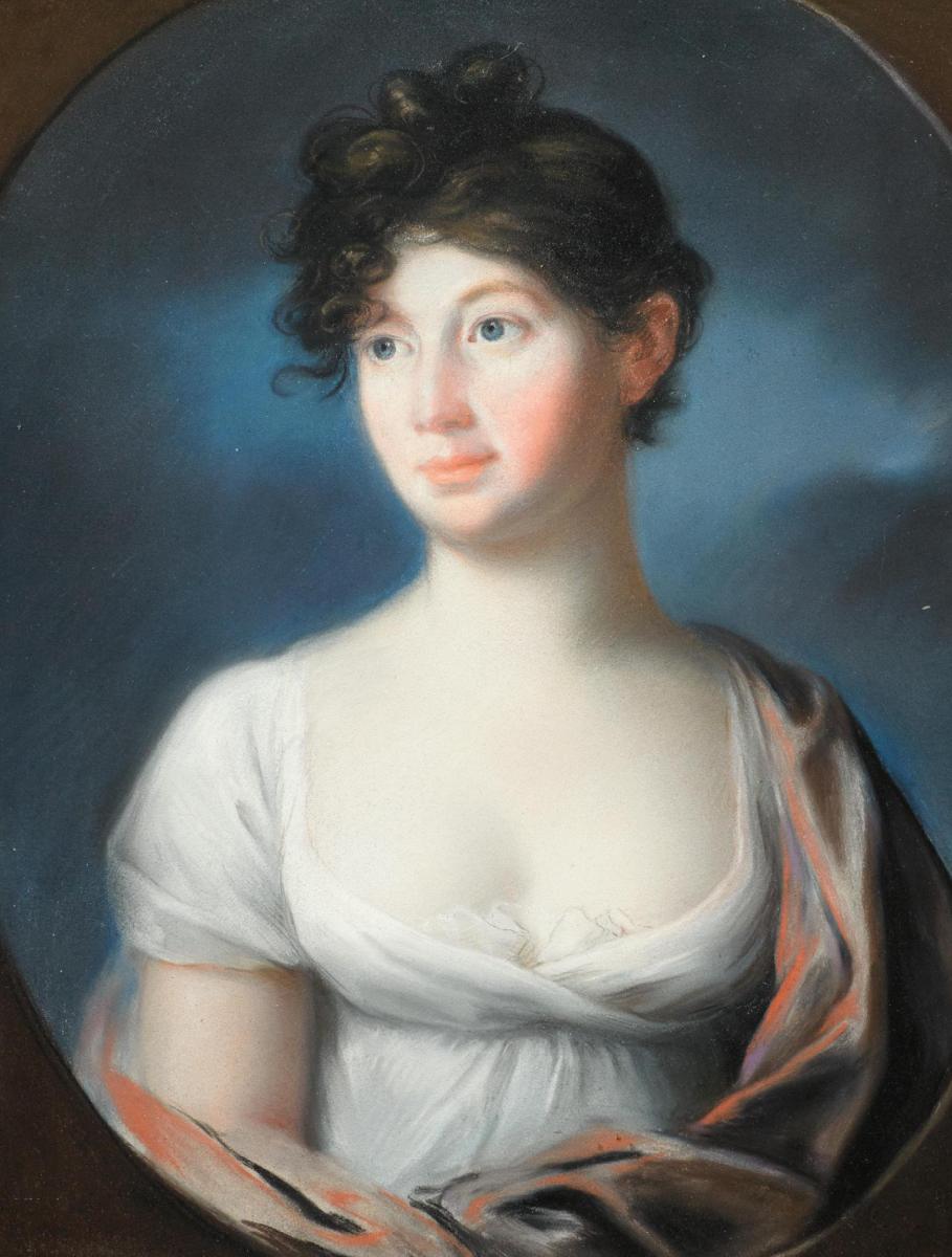 b) Portrait der Charlotte zu Muetzsinefahl (?). Pastell auf Papier. Ca. 33 x 27cm. Rahmen.