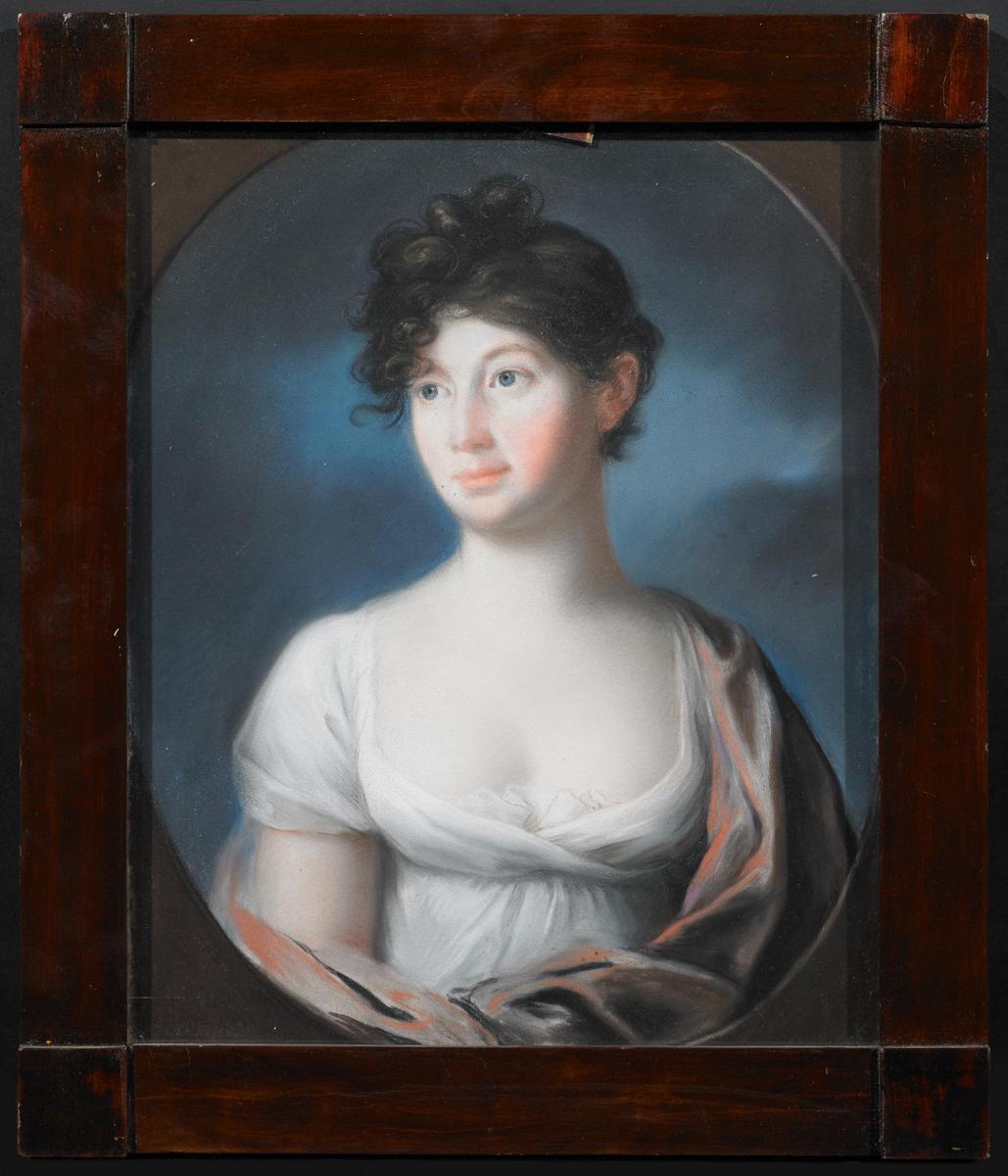 a) Portrait der Sophia Hecker, geb. Schutsmann. Pastell auf Papier auf Karton montiert. 23 x 20,5. Rahmen.