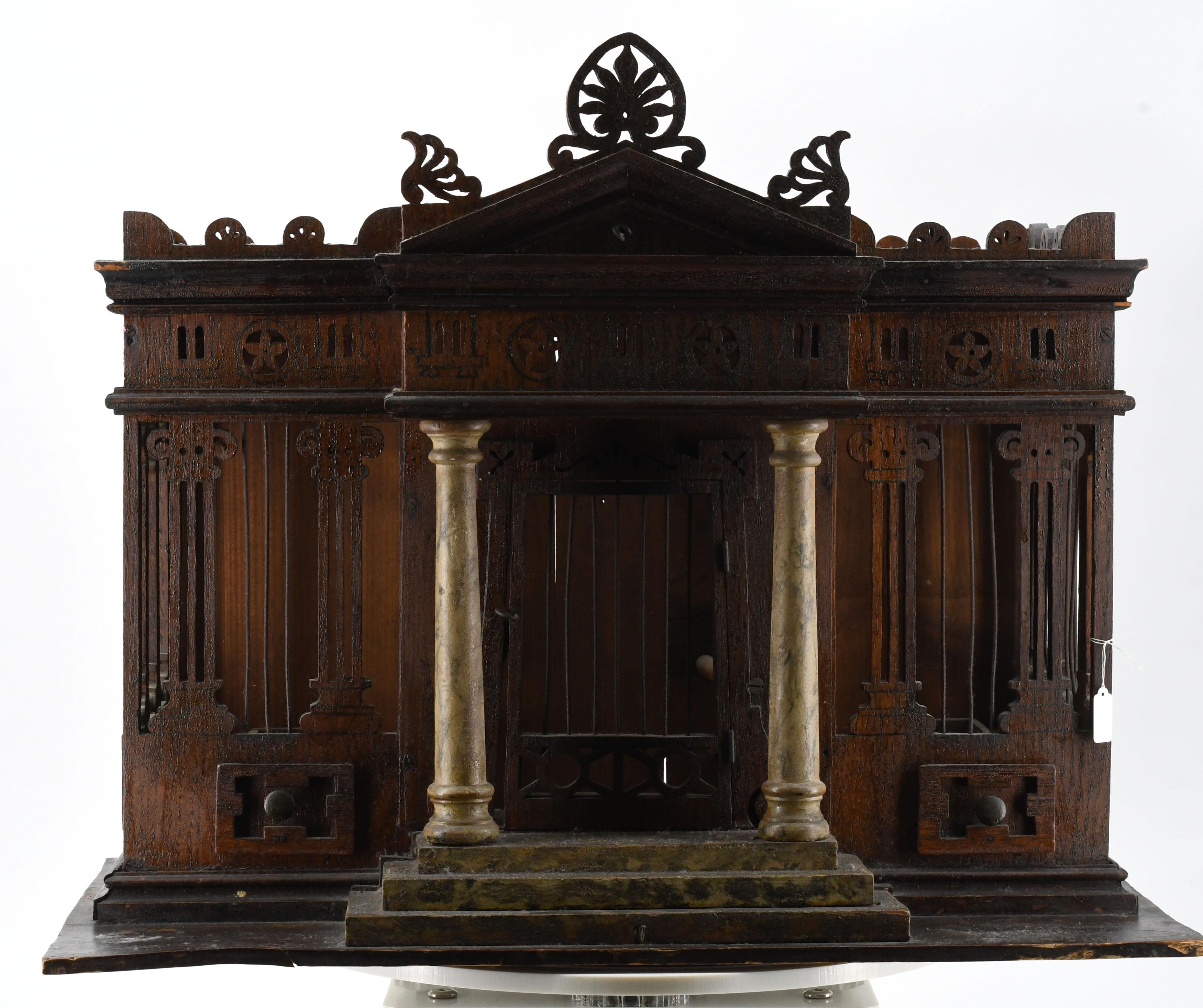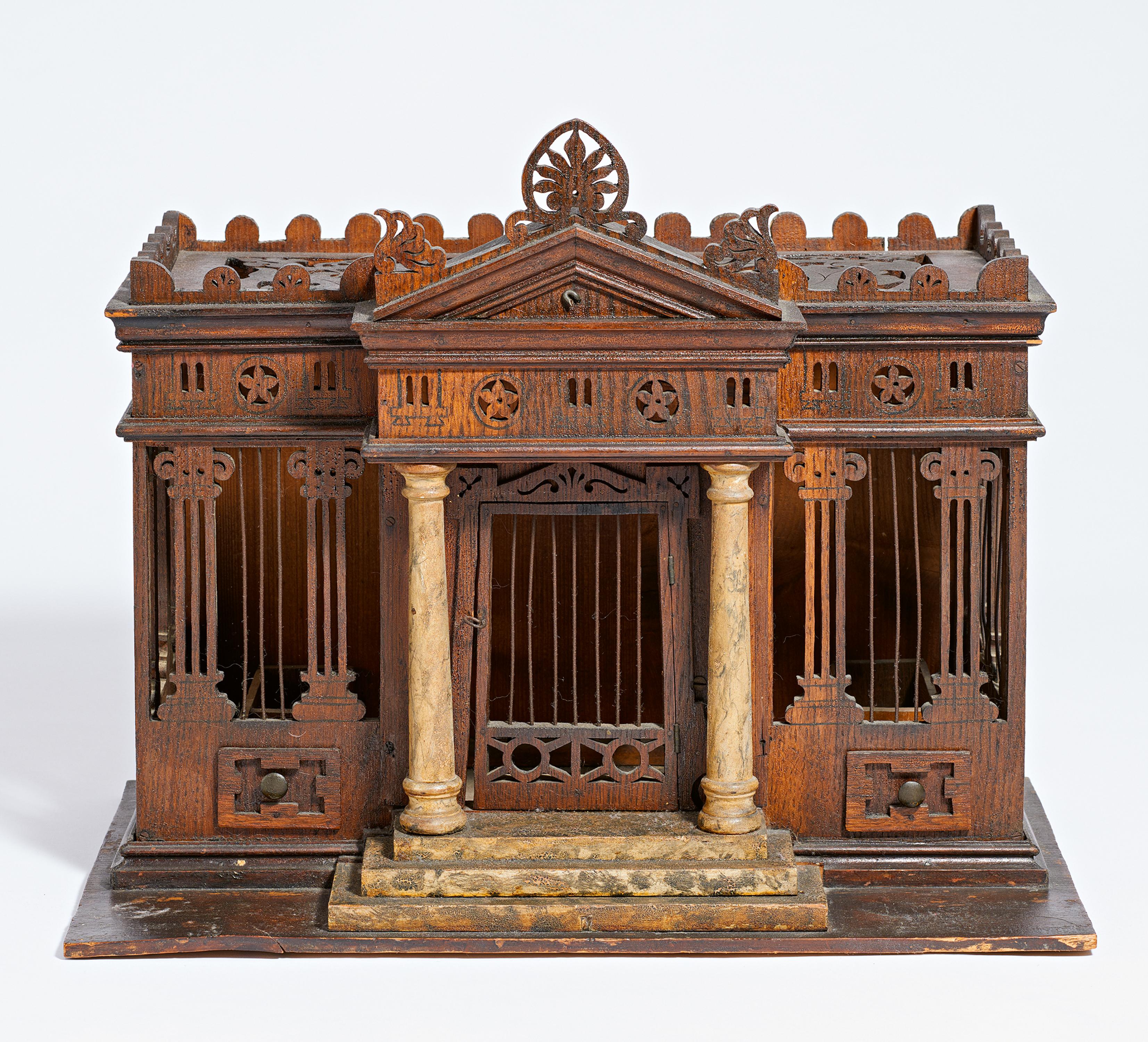 Technik: Holz, aufwendig gesägt. Metallstäbe.