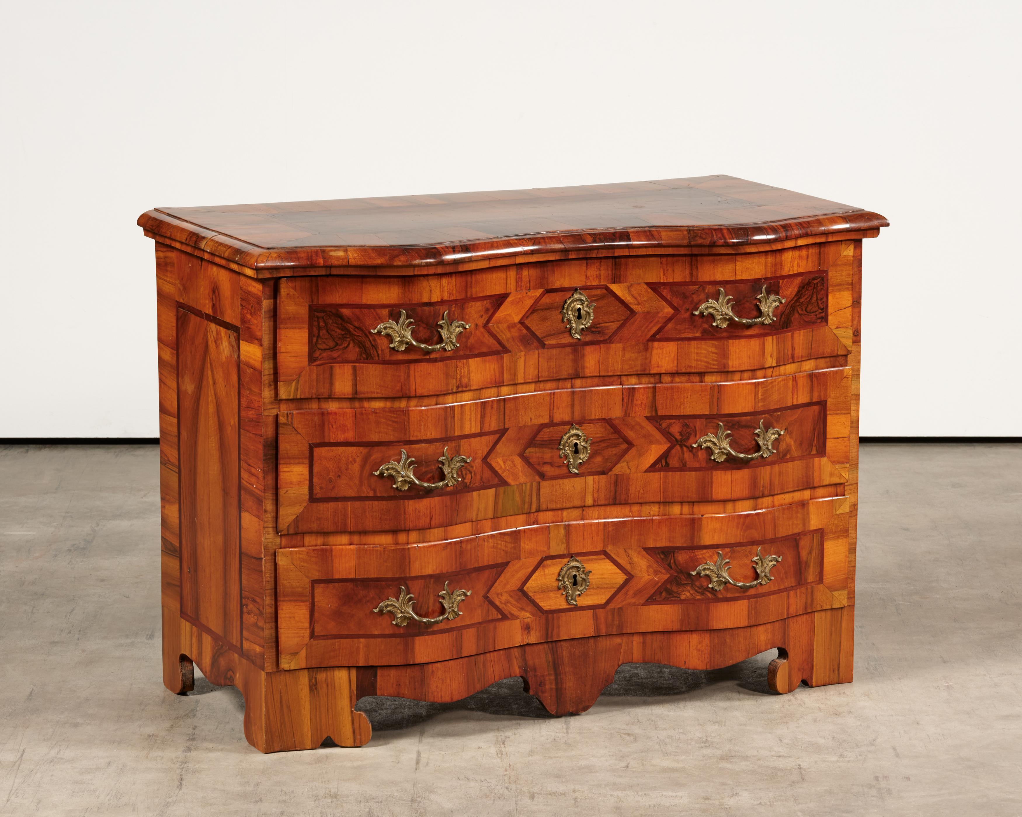 BAROCKKOMMODE MIT DREI SCHÜBEN UND GESCHWUNGENER FRONT.
