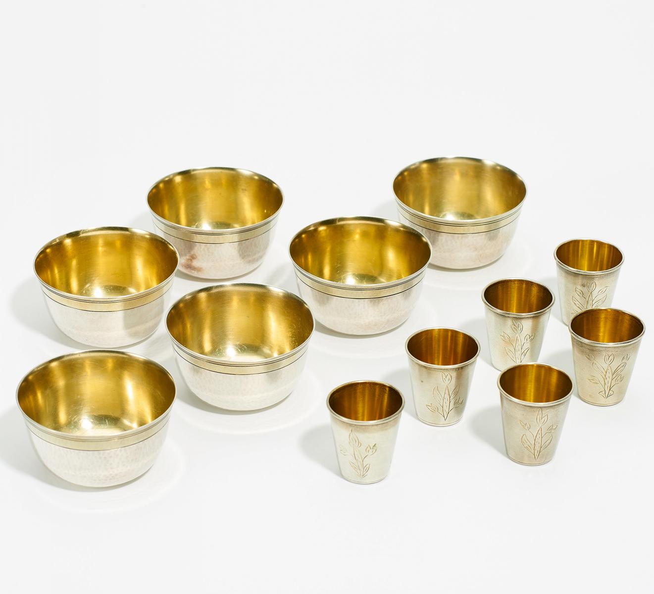 Halbmond und Krone, Feingehalt 925, Verkäufermarke 'G. Hermeling'. Zustand A/B. Beilage: 6 Schnapsbecher.