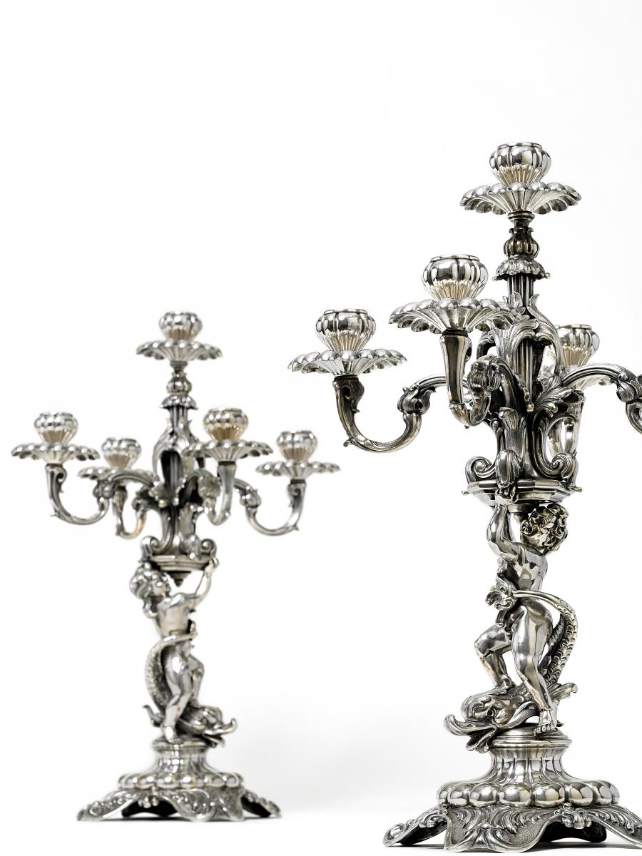 Leuchterarme aus C-Schwüngen gebildet. Ca. 4030 g bzw. 3940 g. Höhe 52 cm.