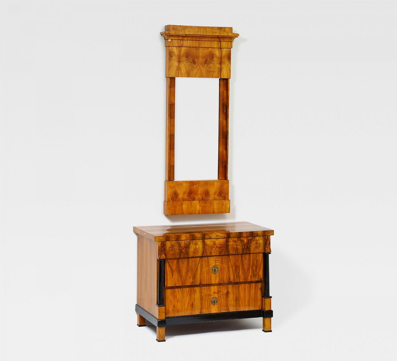BIEDERMEIER-KOMMODE UND SPIEGEL.